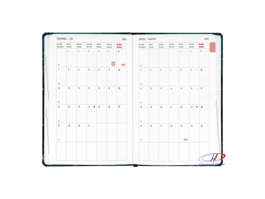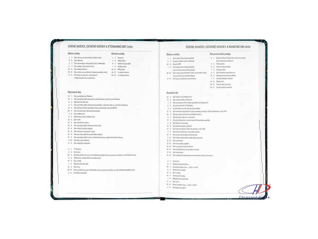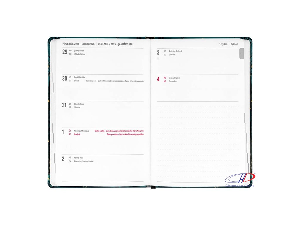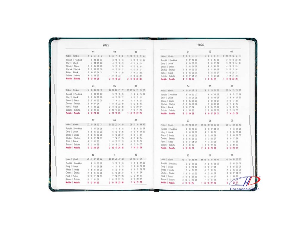 MINIMÁLNY ODBER 3 kusy. Väzba: tuhá knižná. Kalendárium: týždenné 18 mesačné 2 jazyčné (CZ, SK). 192 strán. 18-mesačný diár (jún 2025- december 2026) obsahuje prehľad na rok 2025 a 2026, zoznam mien, kalendárium s menami a sviatkami a priestor na poznámkyDodatočné parametre