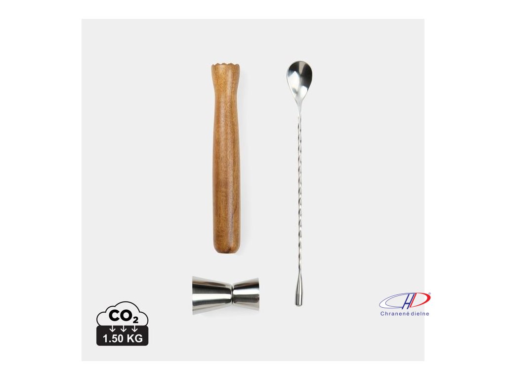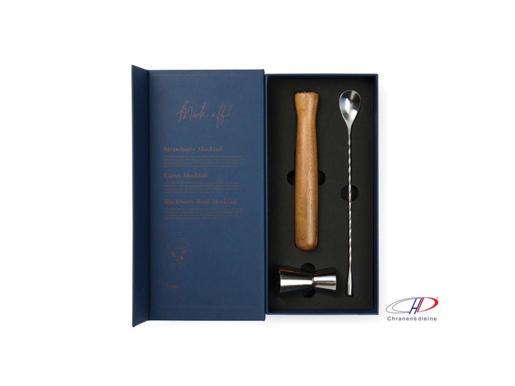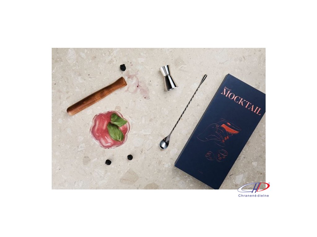 Sada "Story of Mocktail" v krabičke pripomínajúcej knihu obsahuje drevený muddler, džbánok z nerezovej ocele a barovú lyžičku s vírom. Jedinečné balenie pomôže vytvoriť si vlastné zábavné a lahodné moktejly. Darčeková krabička z FSC® kraftového papiera.Dodatočné parametre