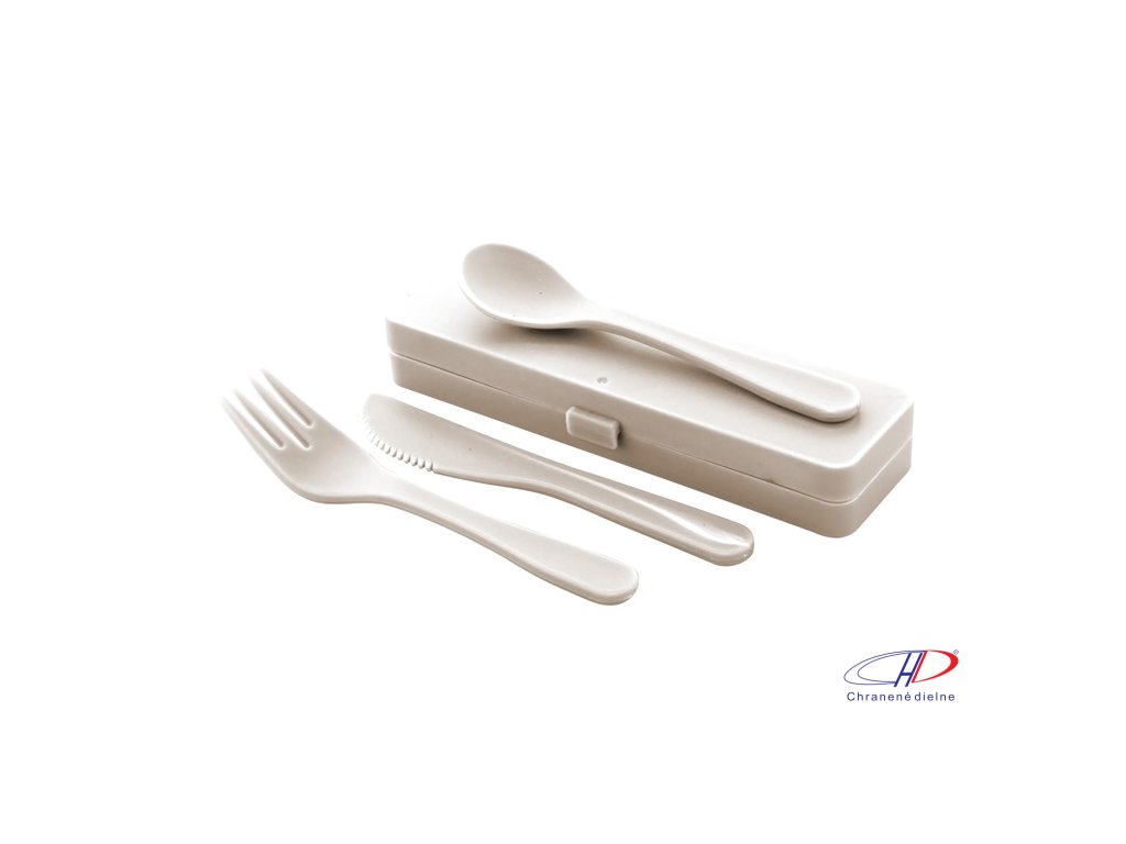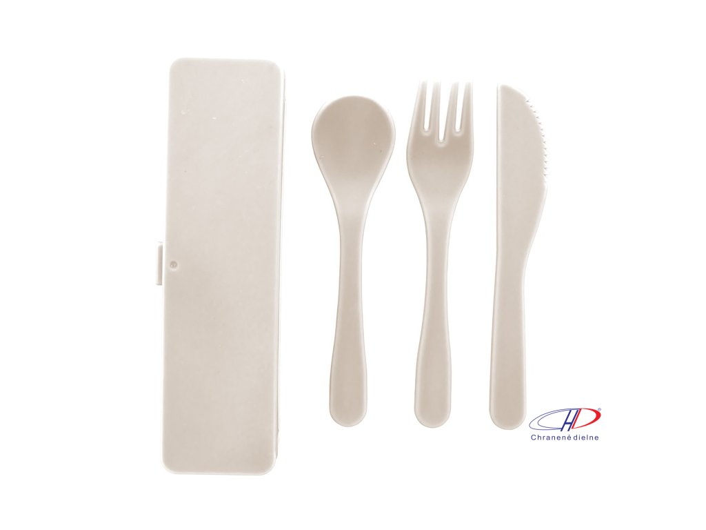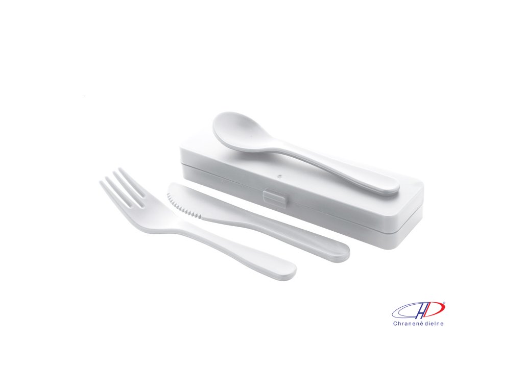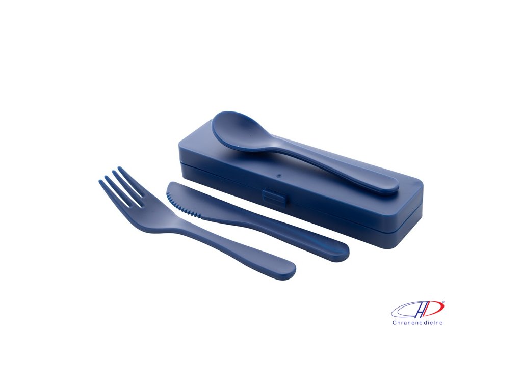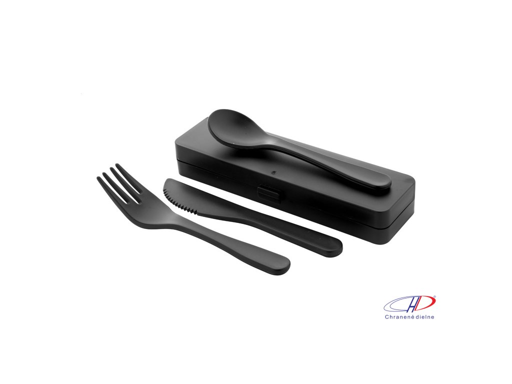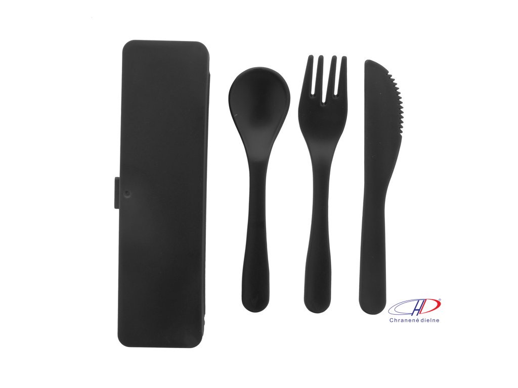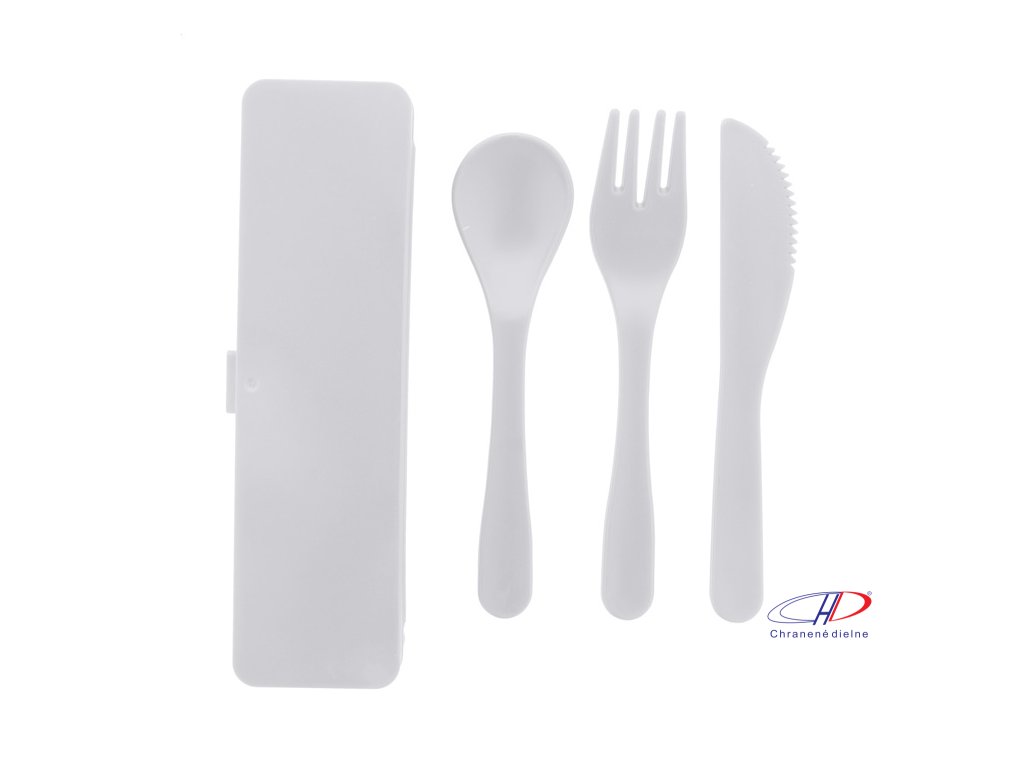 3 ks PP plastové príbory vo farebnom puzdre. Vrátane vidličky, noža a lyžice.