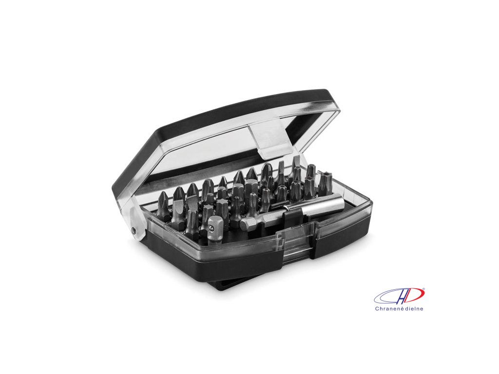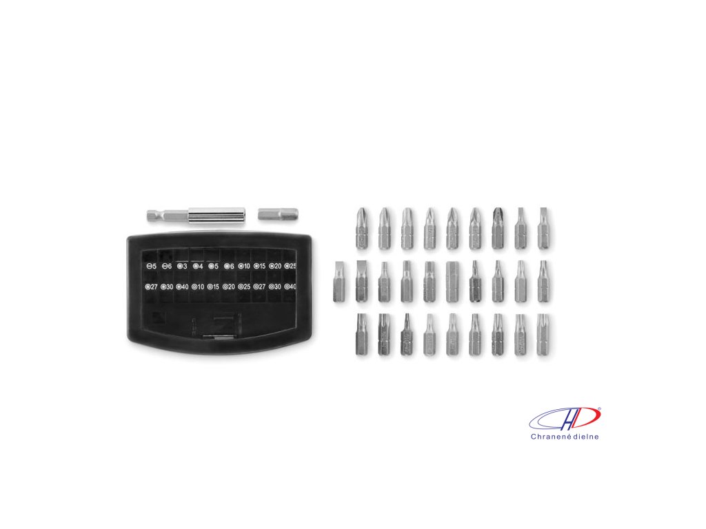 32-dielna sada rôznych skrutkovacích bitov s otočným držiakom s klipom.Dodatočné parametre
