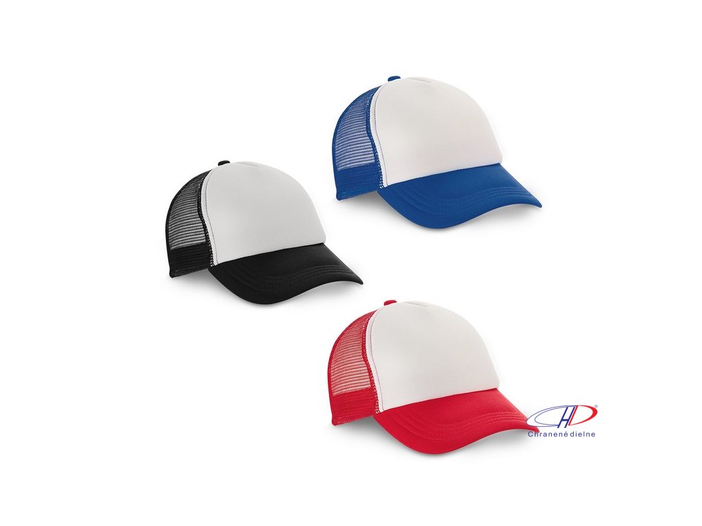 Baseballová čiapka z polyesteru a sieťoviny. Čiapka sa nastavuje plastovou prackou