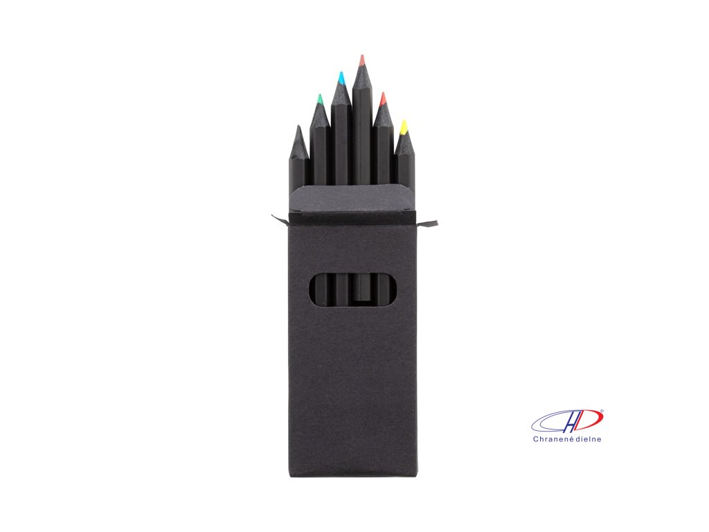 6dielna sada pasteliek z čierneho dreva v čiernej krabičke z papiera.