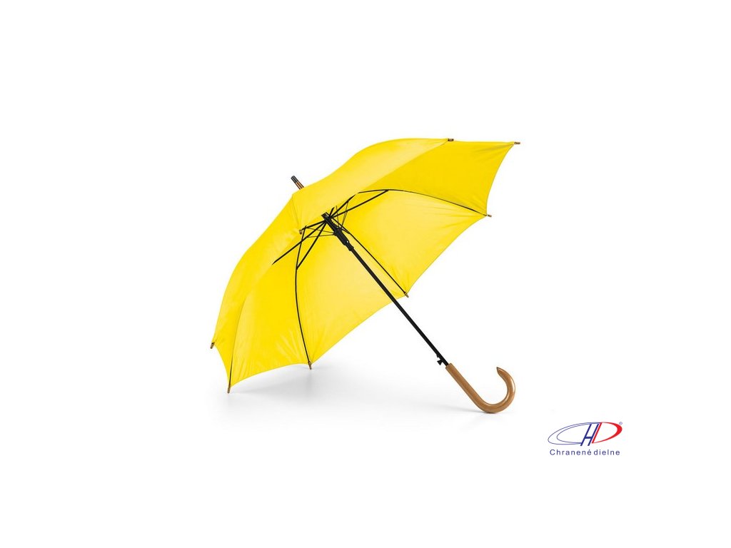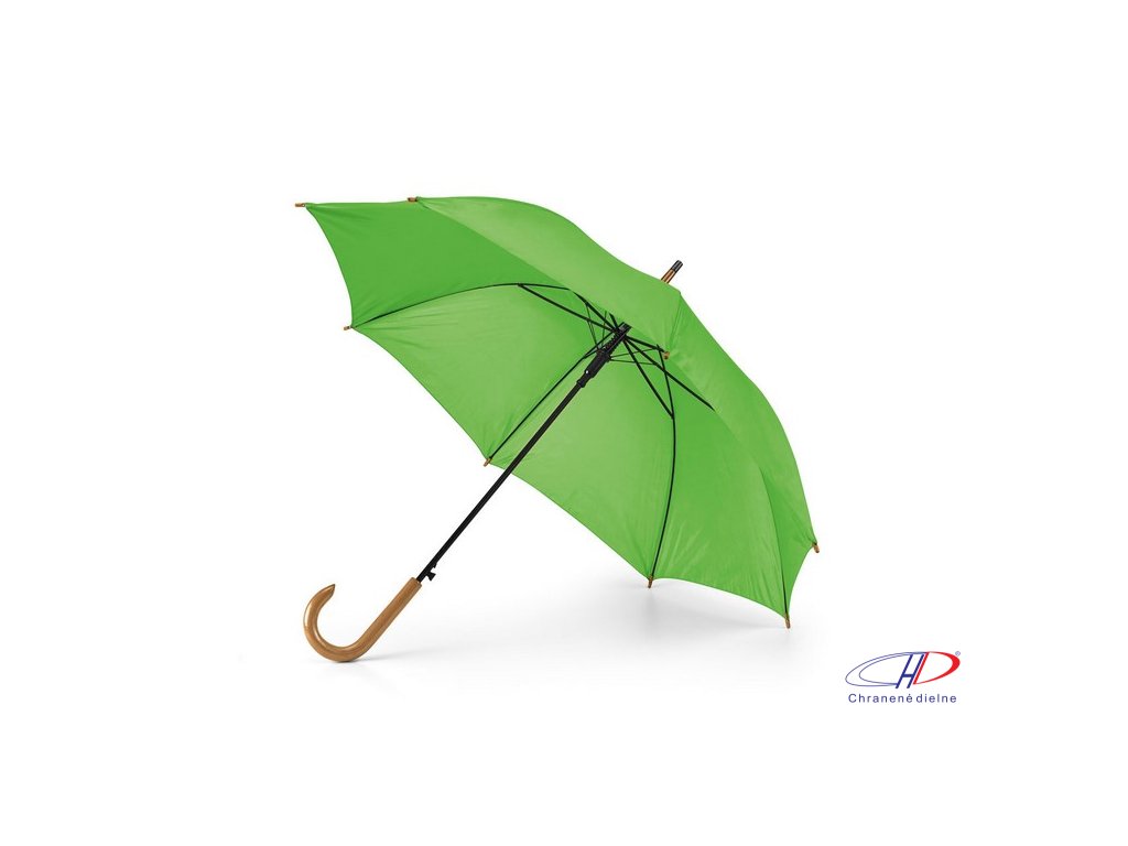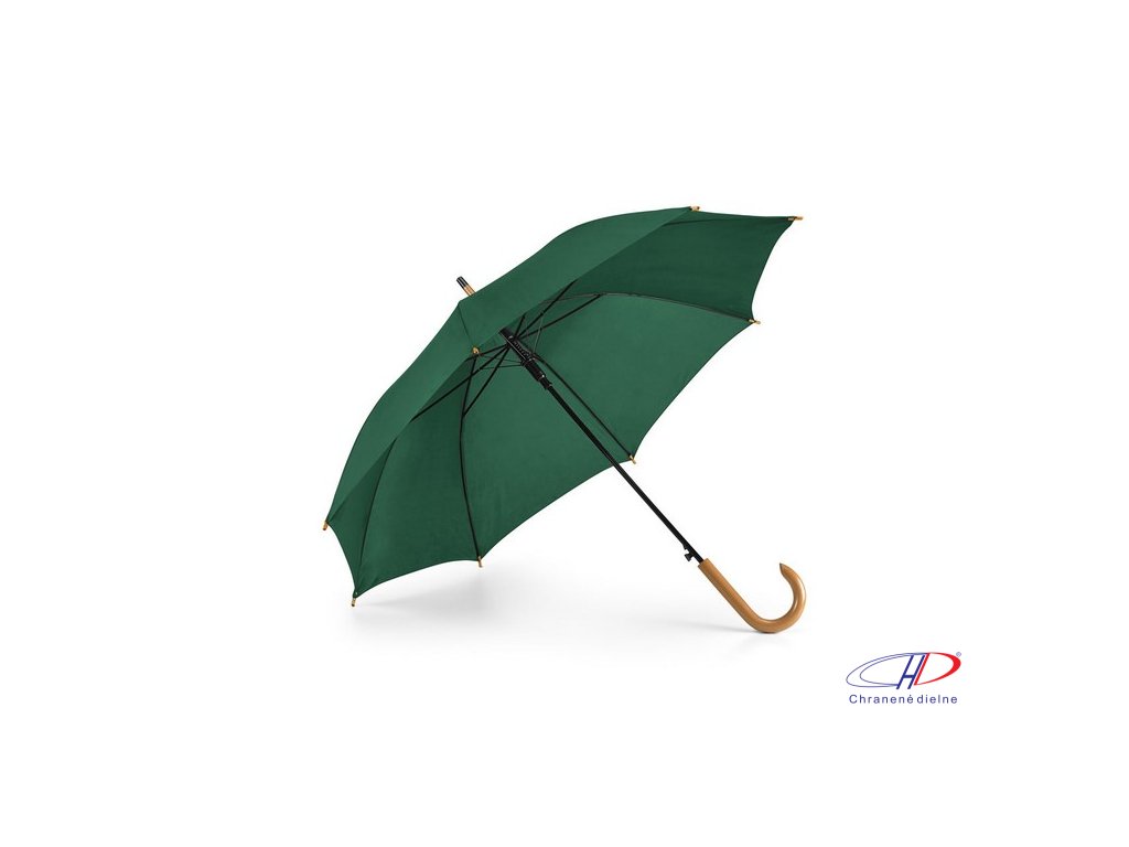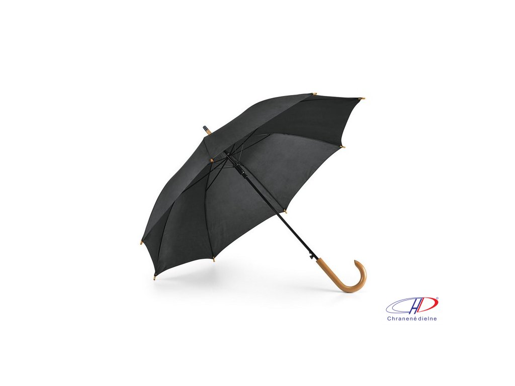 Polyesterový dáždnik 190T s kovovou a drevenou rukoväťou a automatickým otváracím mechanizmom.