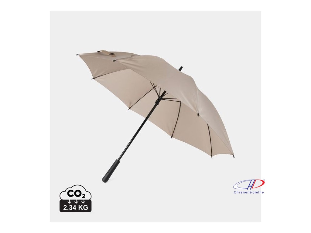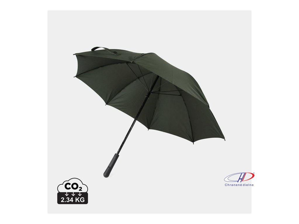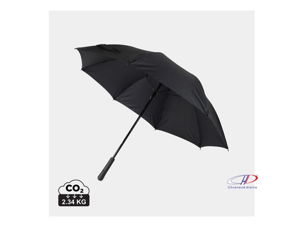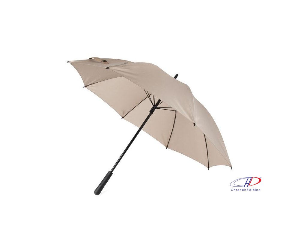 23" dáždnik z 190T pongee RPET. Kovová palica, plne sklolaminátová kostra pre odolnosť v silnom vetre. Minimalistické madlo z ABS plastu s pogumovanou úpravou. Automatické otváranie, manuálne zatváranie. Zapínacie pútko z ikonického Baltimore PU.Dodatočné parametre