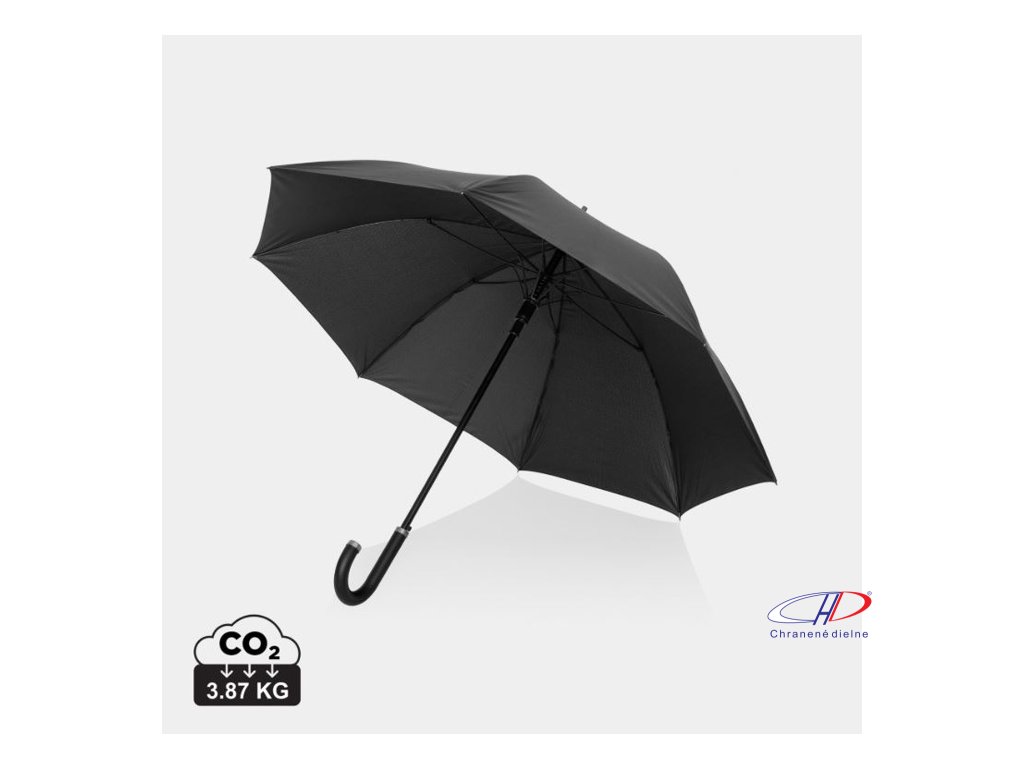 Funkcia automatického otvárania a manuálneho zatvárania. Sklené vlákna v konštrukcii a oceľová tyč dodávajú dáždniku pevnosť . 8 pevných rebier a 8 panelov. Rukoväť z RPET s PU úpravou. Swiss Peak visačka s QR kódom pre digitálny produktový pas.Dodatočné parametre