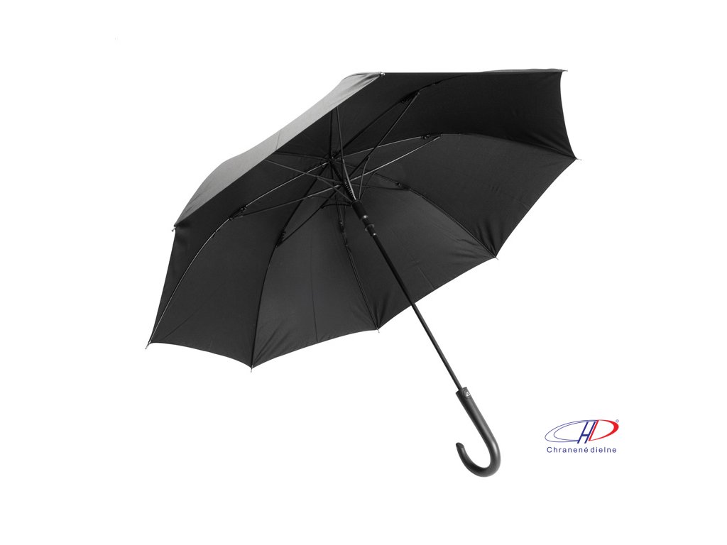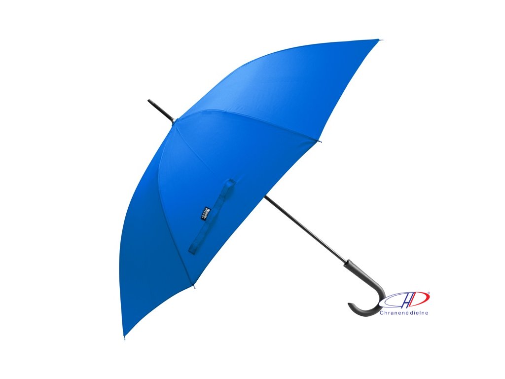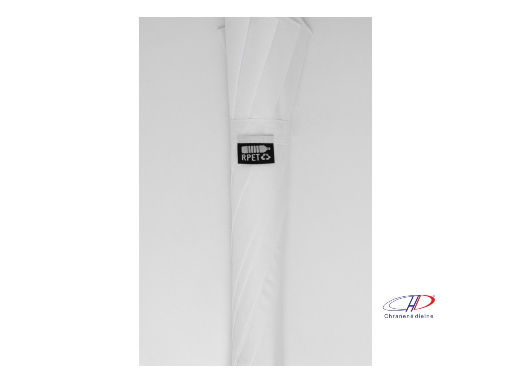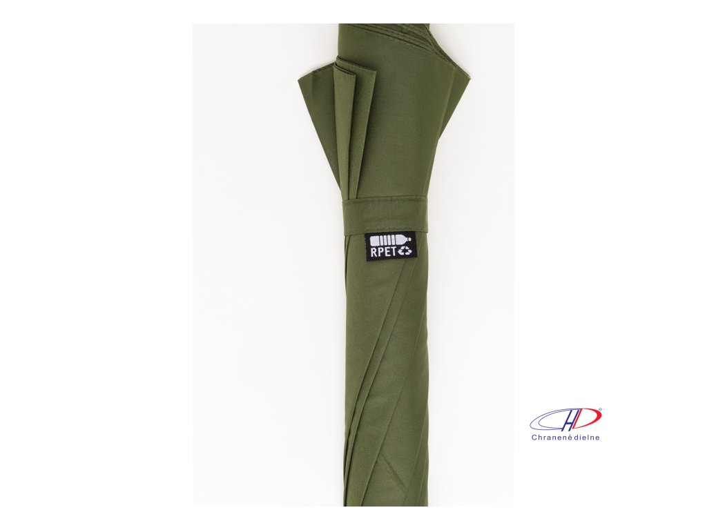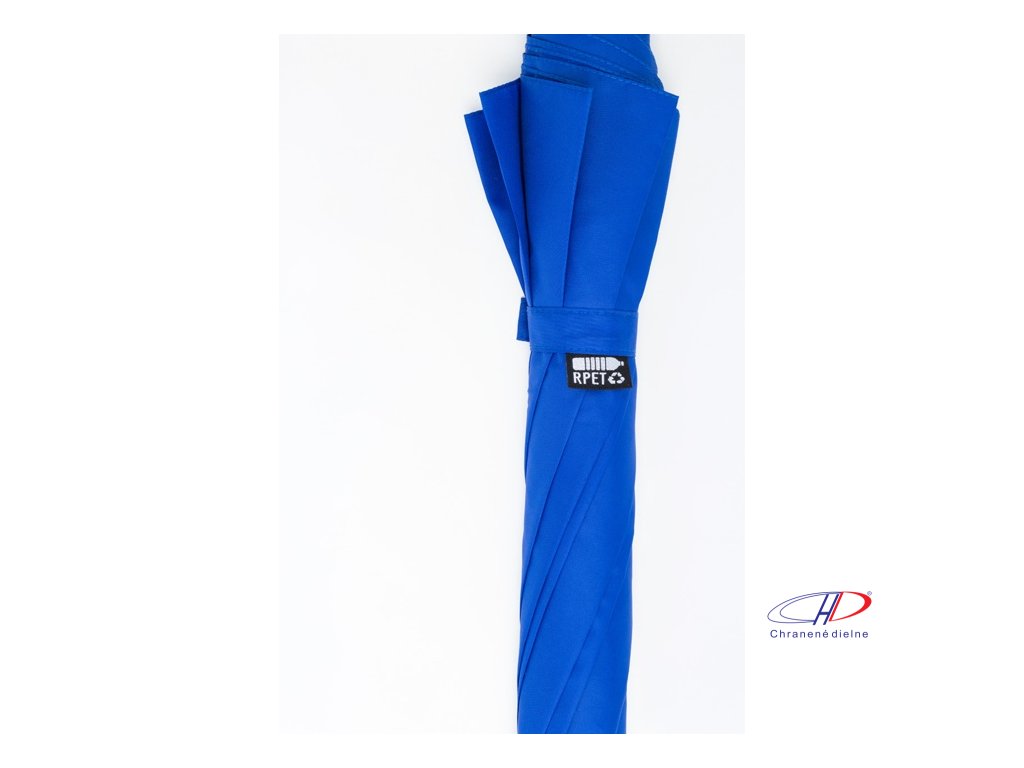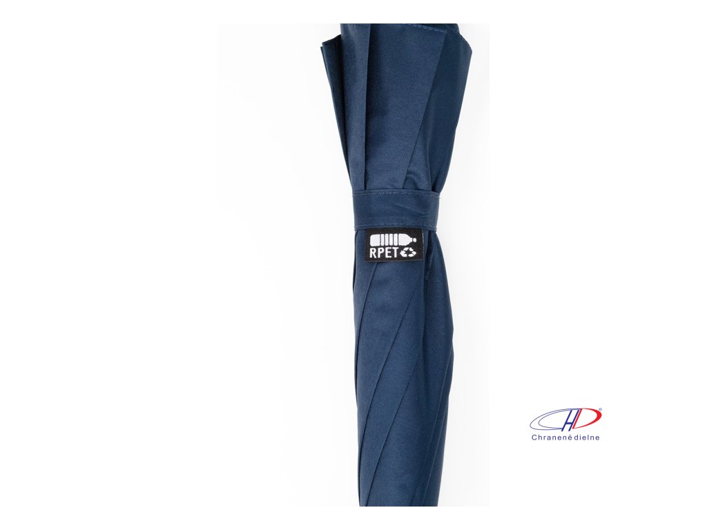 Automatický vetruodolný dáždnik s 8 panelmi, sklolaminátovým rámom, kovovou tyčou a zakrivenou ABS rukoväťou. Pongee 190T RPET. S výrazným štítkom RPET.Dodatočné parametre