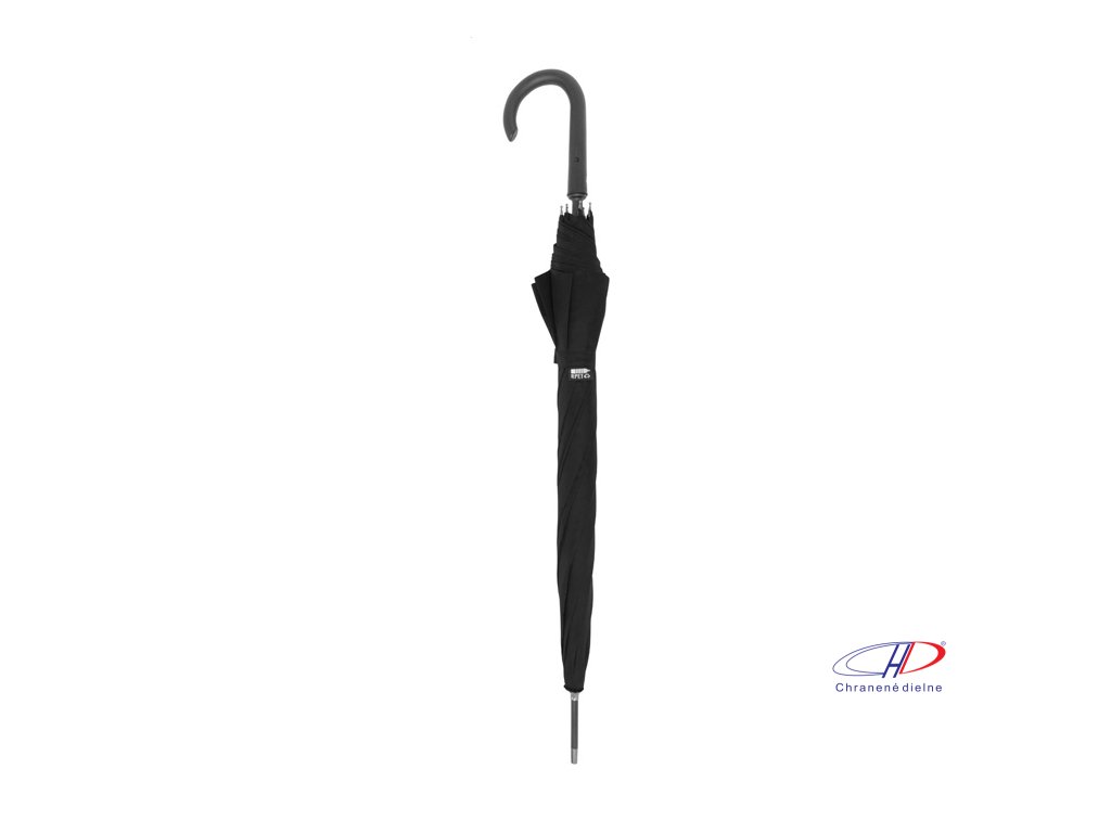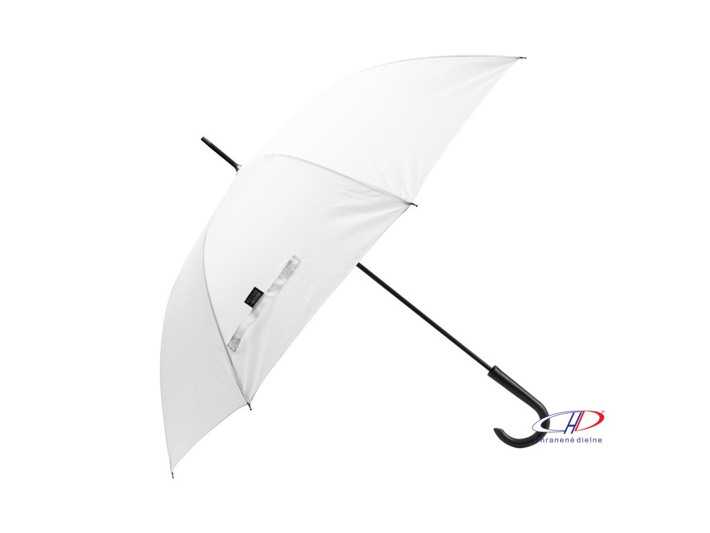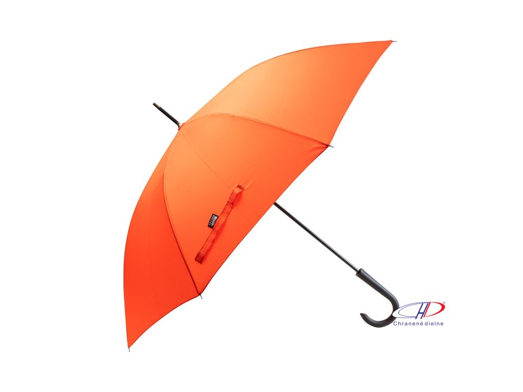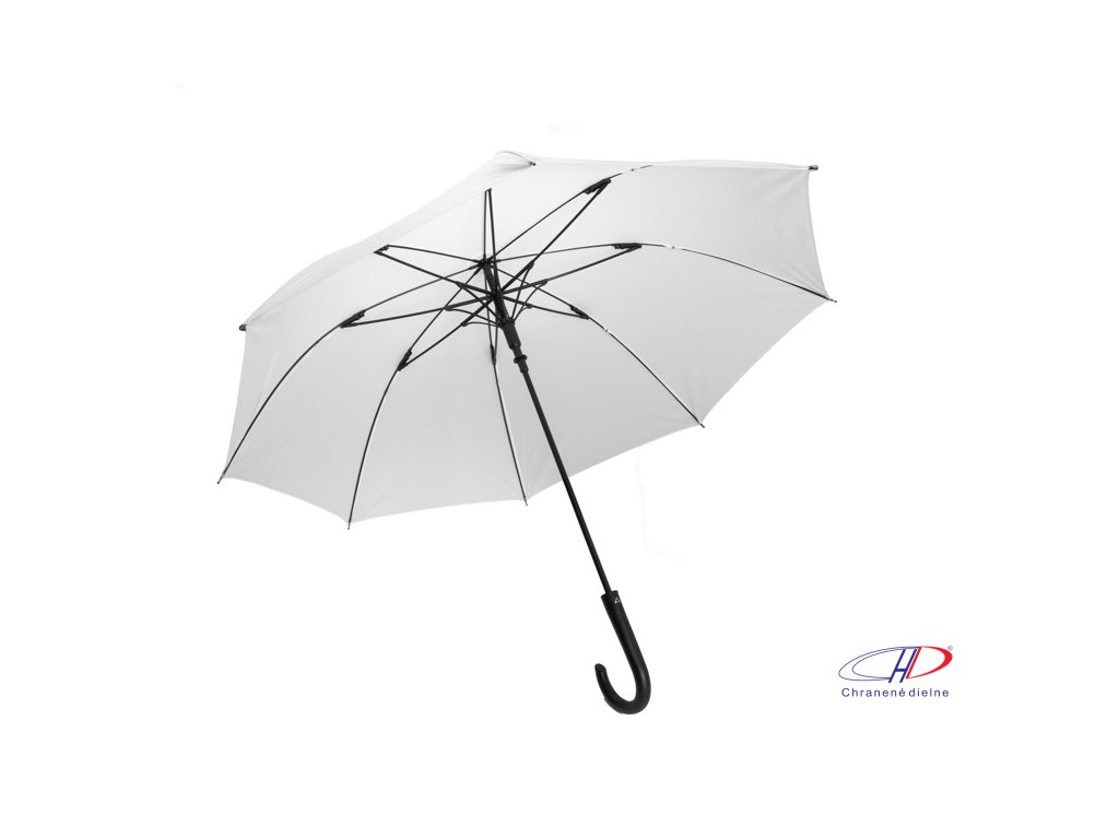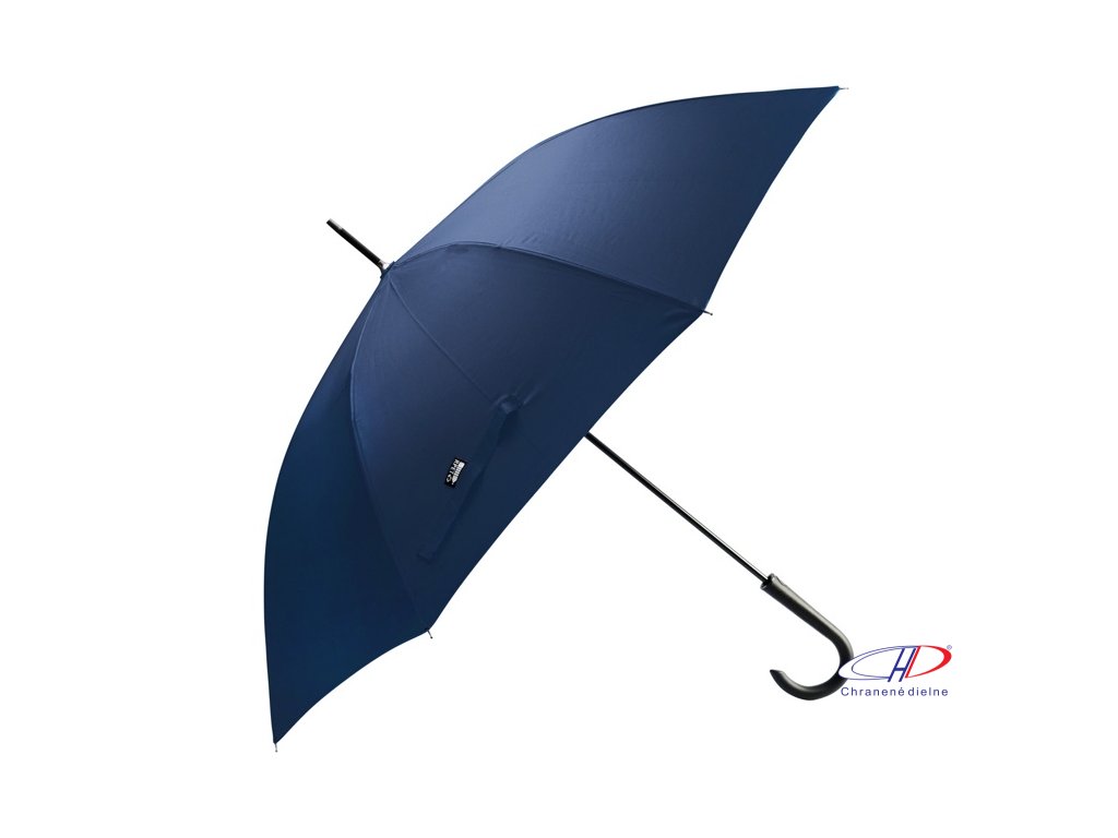 Automatický vetruodolný dáždnik s 8 panelmi, sklolaminátovým rámom, kovovou tyčou a zakrivenou ABS rukoväťou. Pongee 190T RPET. S výrazným štítkom RPET.Dodatočné parametre