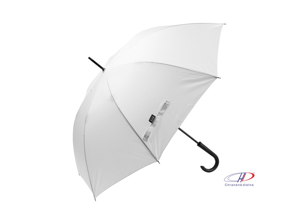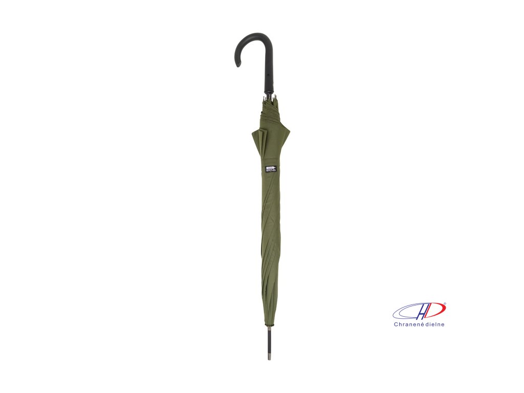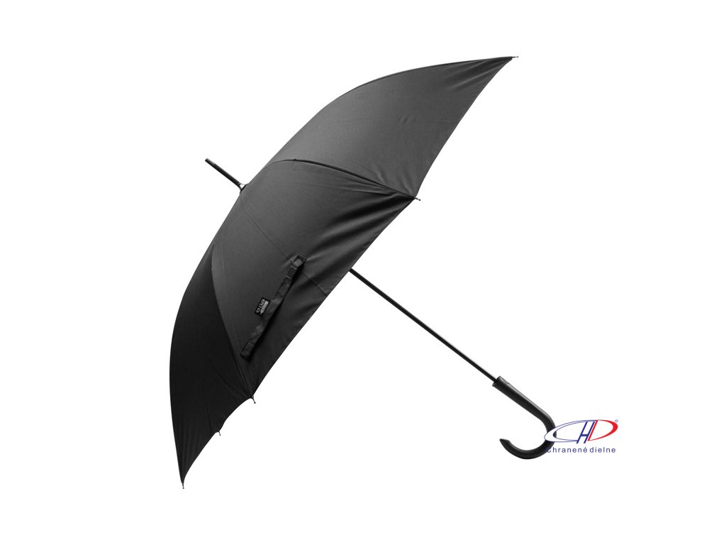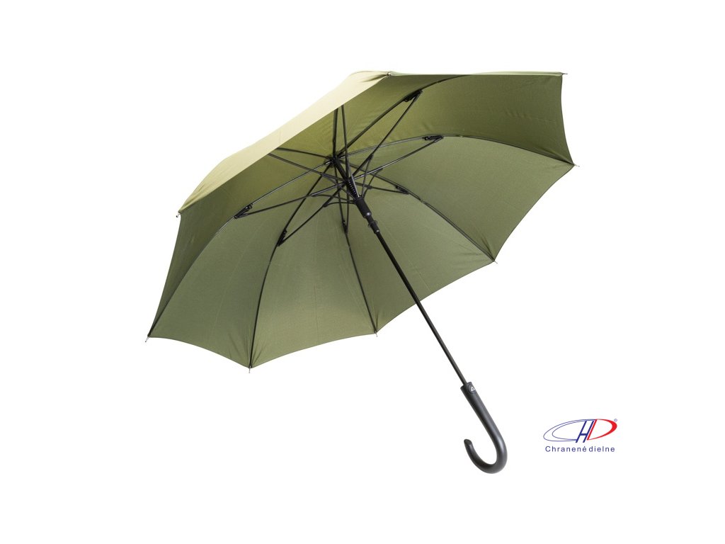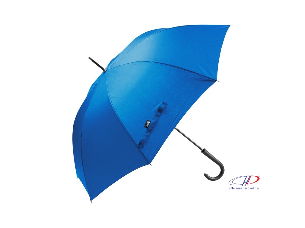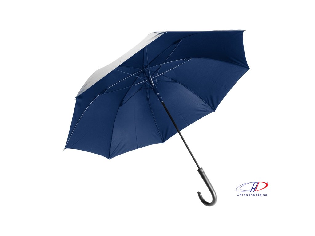 Automatický vetruodolný dáždnik s 8 panelmi, sklolaminátovým rámom, kovovou tyčou a zakrivenou ABS rukoväťou. Pongee 190T RPET. S výrazným štítkom RPET.Dodatočné parametre