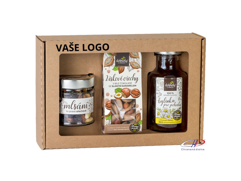 -darčeková krabica s VAŠIM LOGOM formou nálepky, alebo komplimentkou