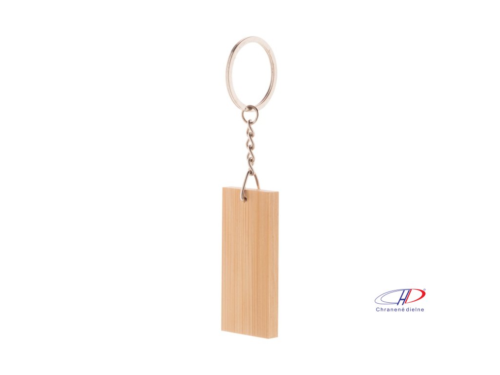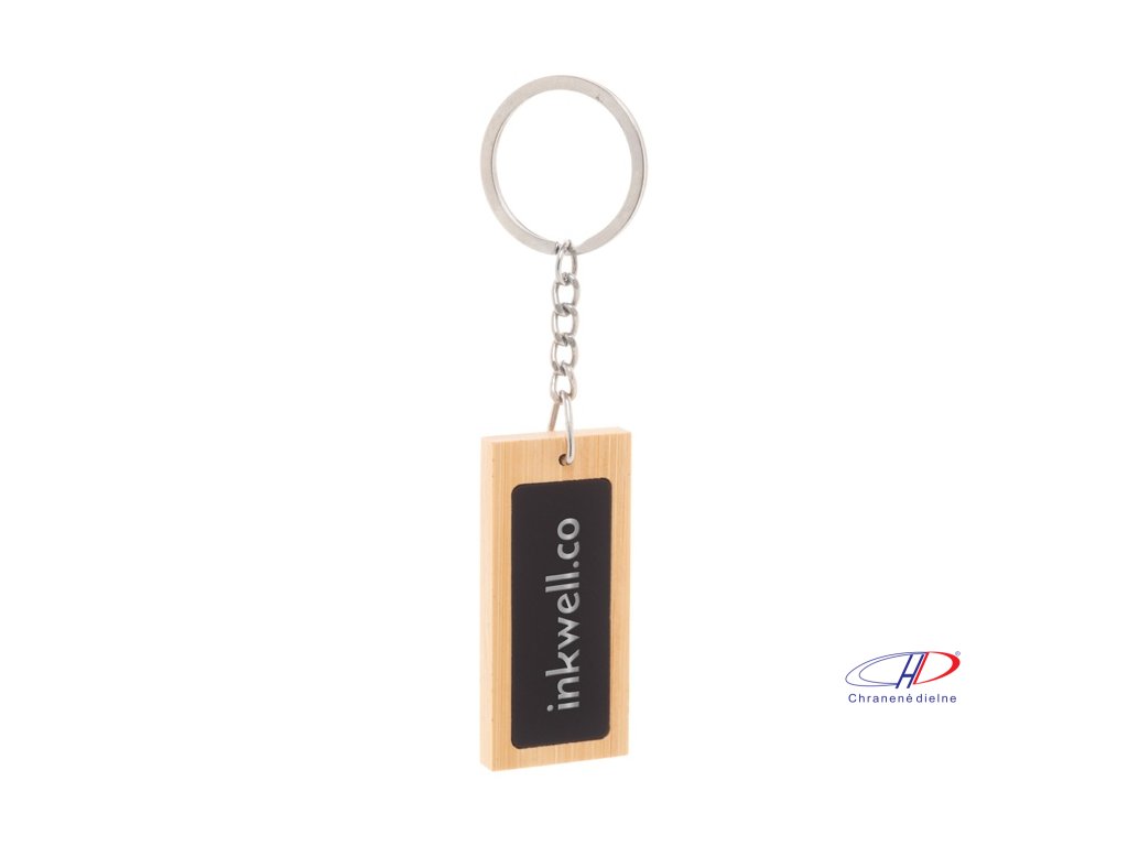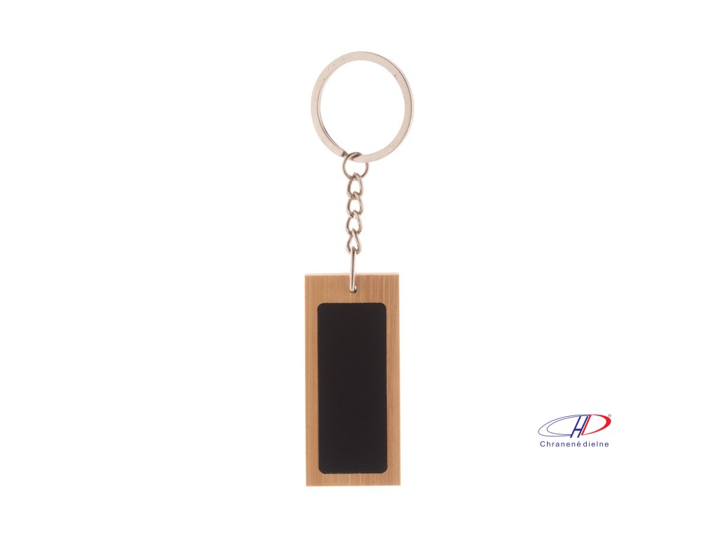 Bambusový prívesok na kľúče s pogumovanou nerezovou doštičkou a kovovým krúžkom. So špeciálnou vrstvou na zrkadlové laserové gravírovanie.Dodatočné parametre