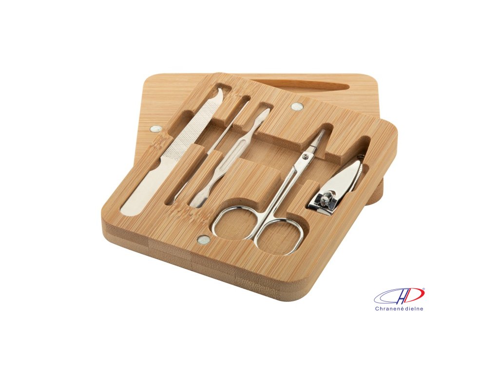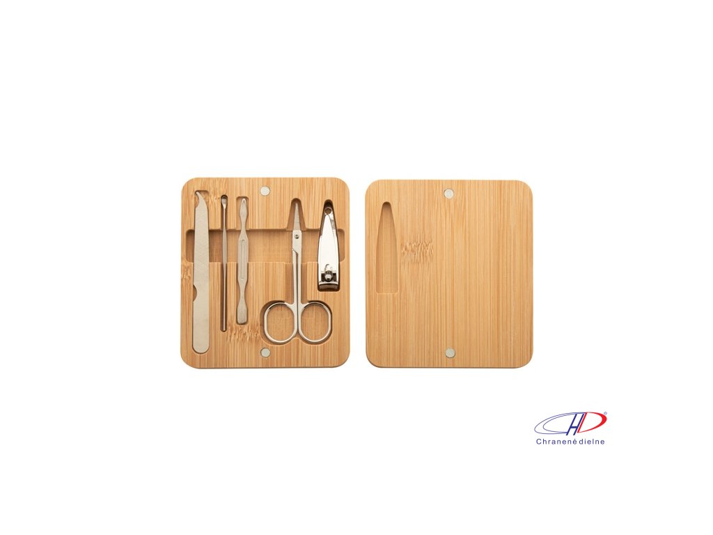 5 dielna manikúra v bambusovej krabičke s magnetickým vekom. Obsahuje nerezové nástroje: klieštiky, nožnice na nechty, pilník na nechty a 2 odstraňovače kožičky.Dodatočné parametre