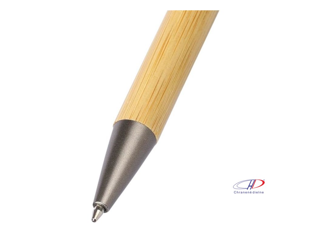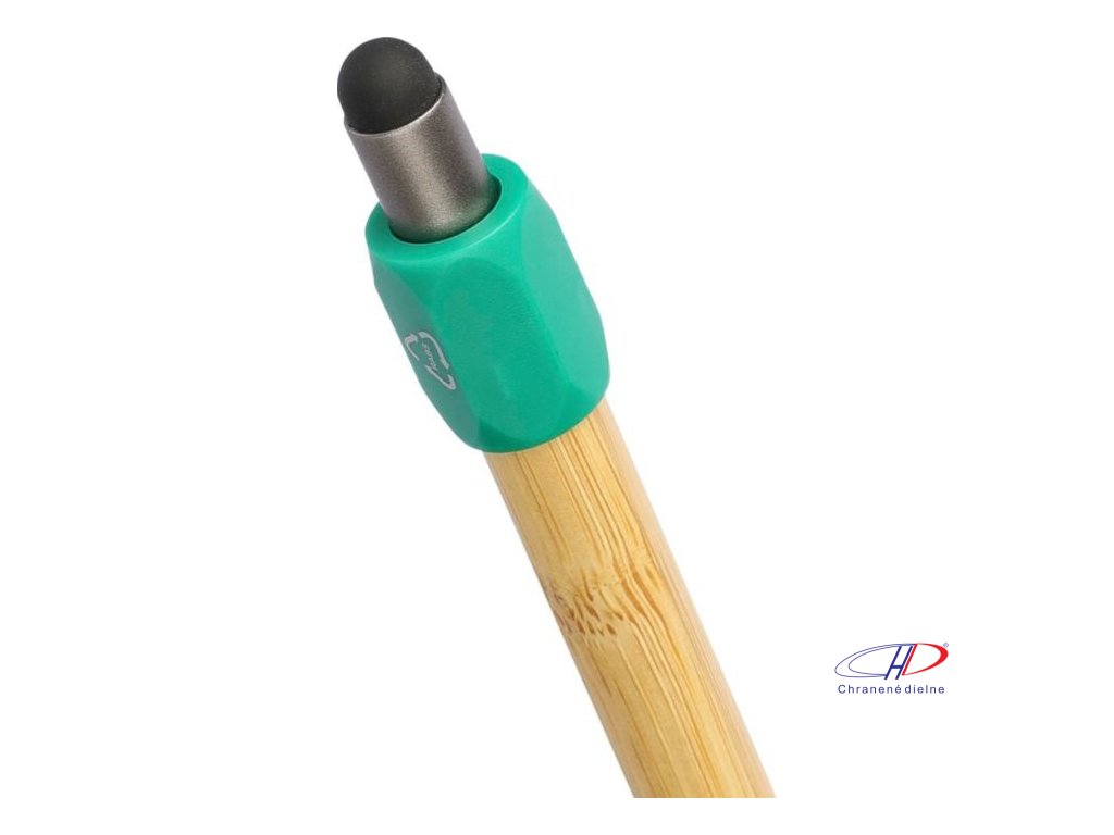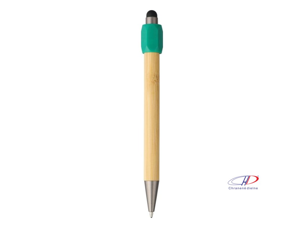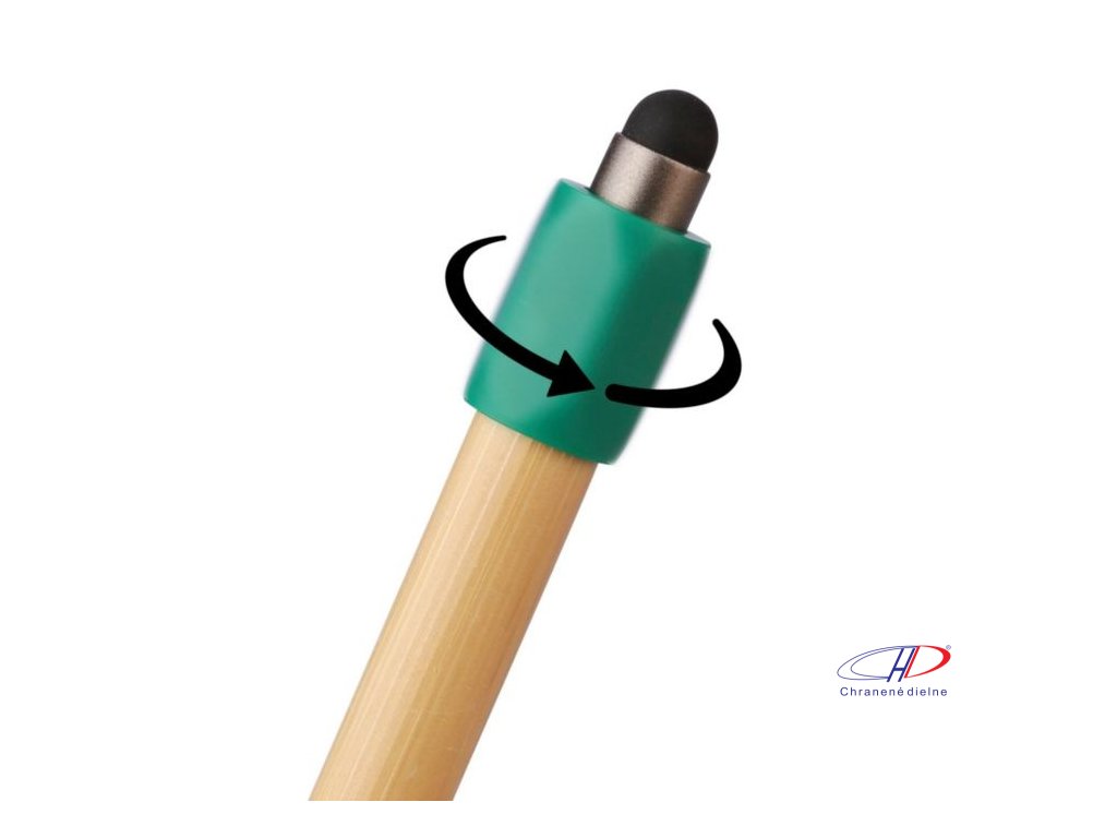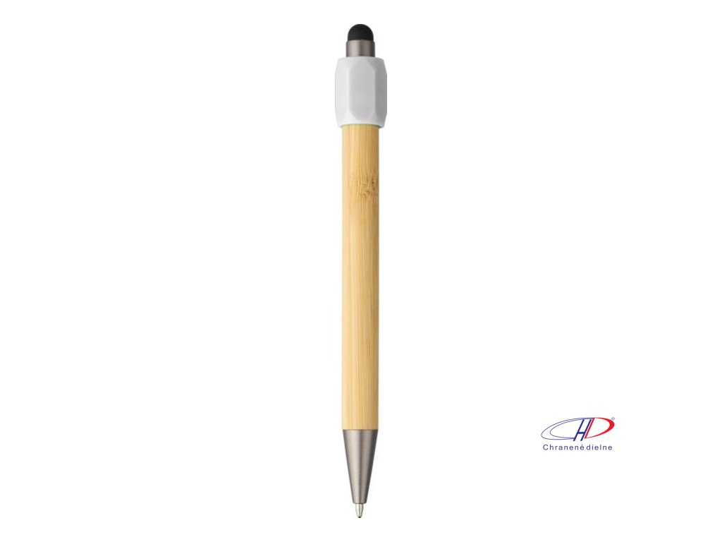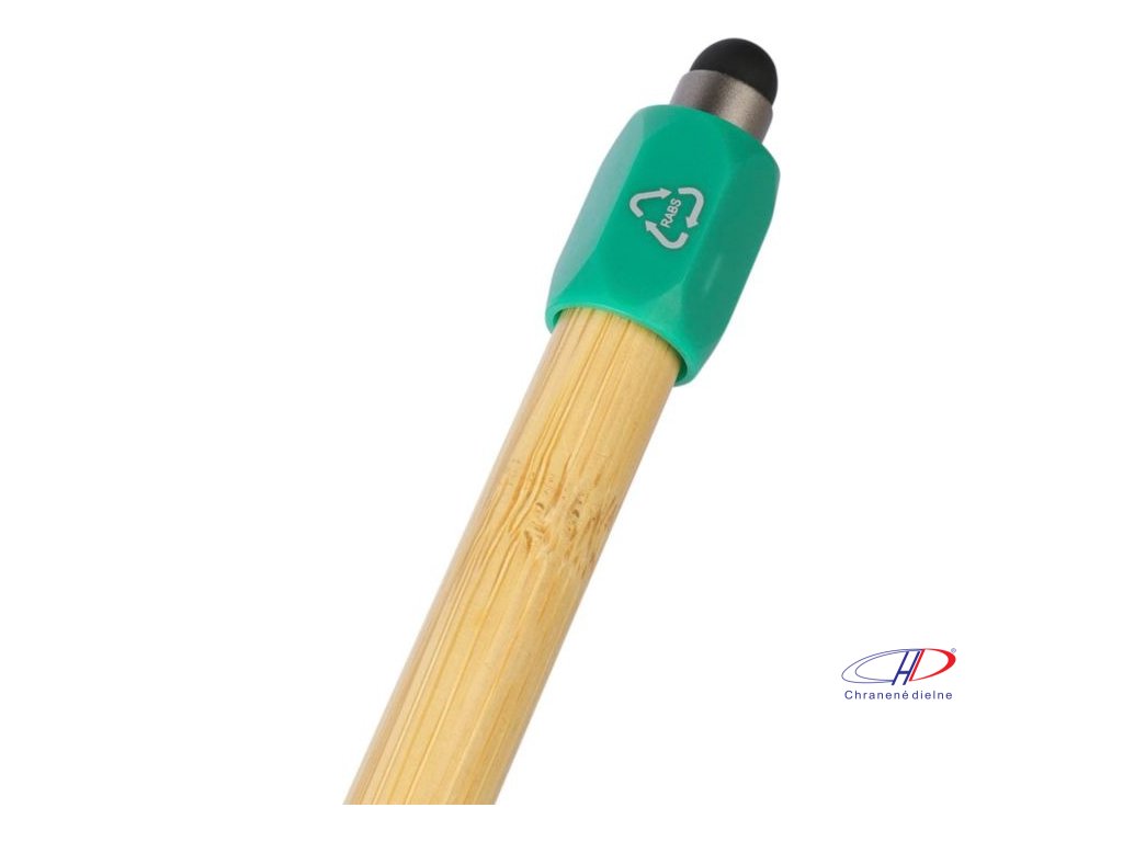 Bambusové guľôčkové pero s funkciou otáčania z recyklovaného ABS plastu a čiernym dotykovým hrotom. Má tlačiaci mechanizmus, hrot s hrúbkou 1,0 mm a modrý atrament s približnou dĺžkou písania 800 metrov.Dodatočné parametre