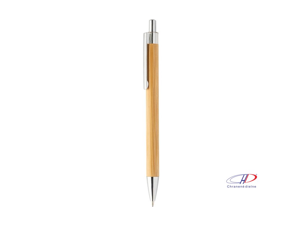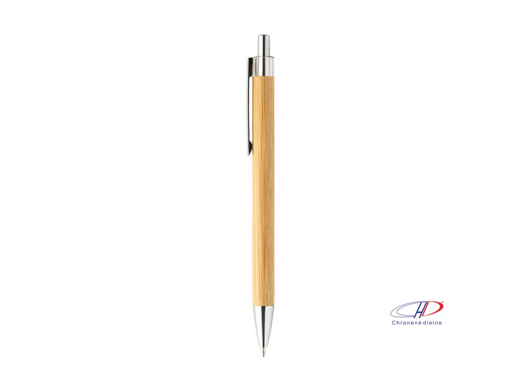 Bambusové guľôčkové pero s priehľadnou hornou časťou a chrómovými detailmi.
