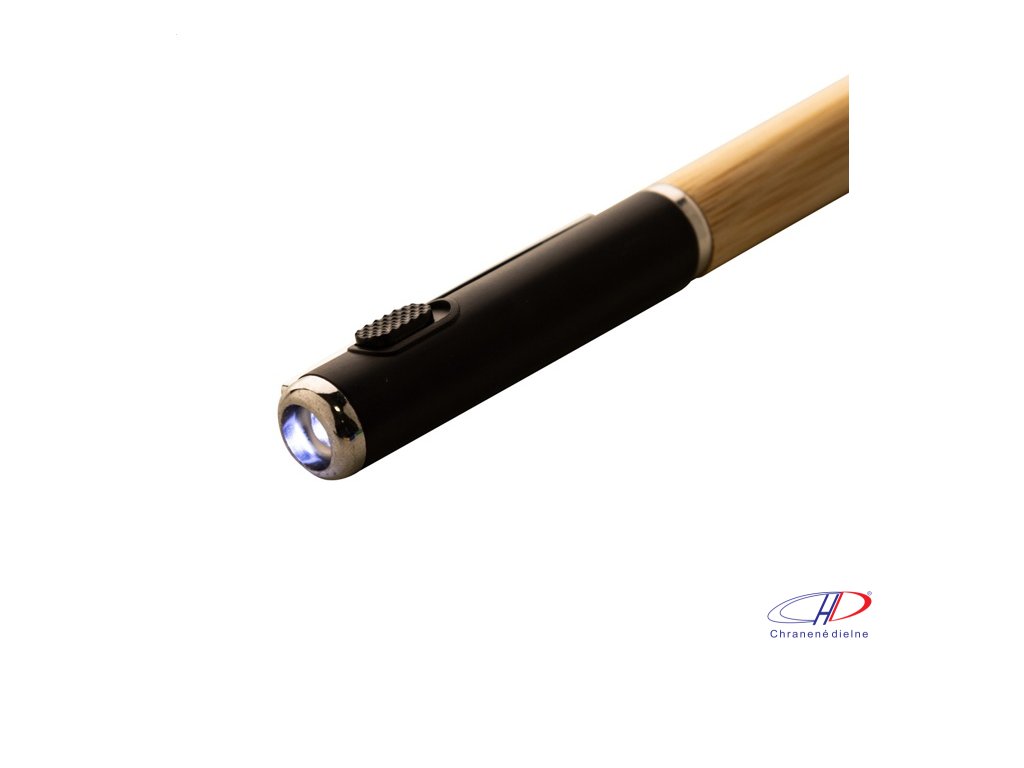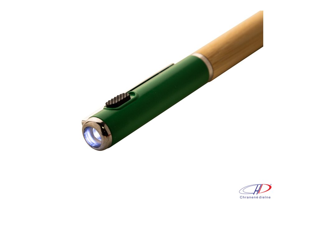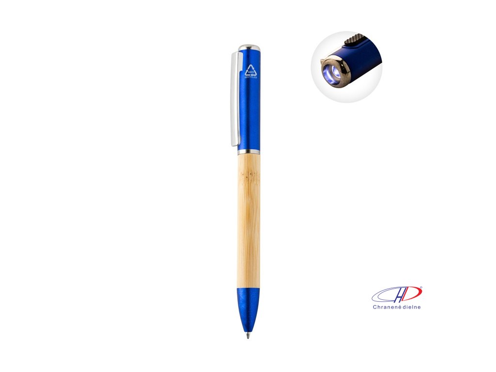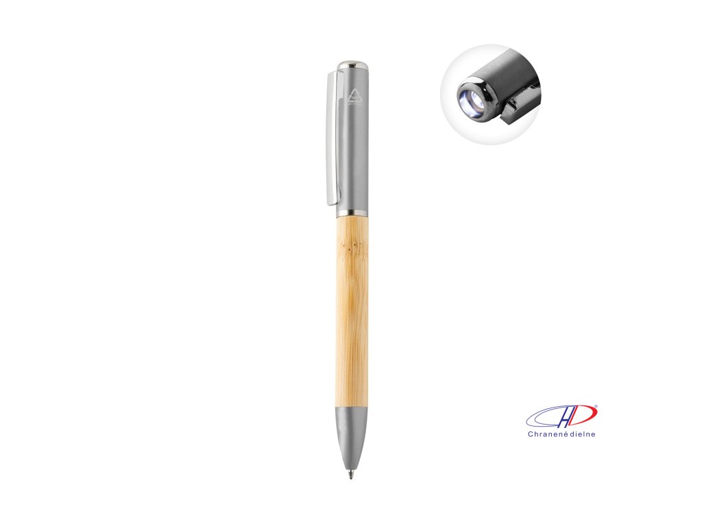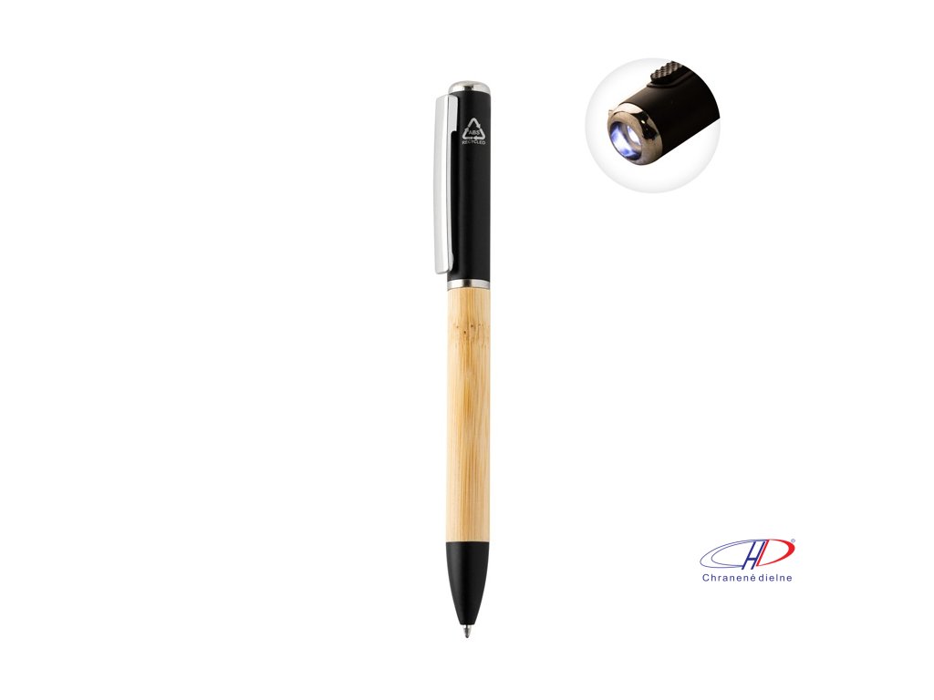 Guľôčkové pero z bambusu a recyklovaného ABS plastu s 1 LED svietidlom.