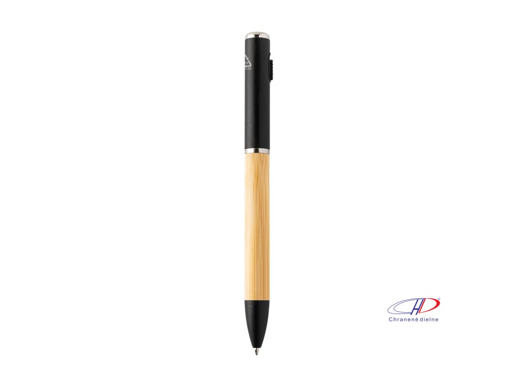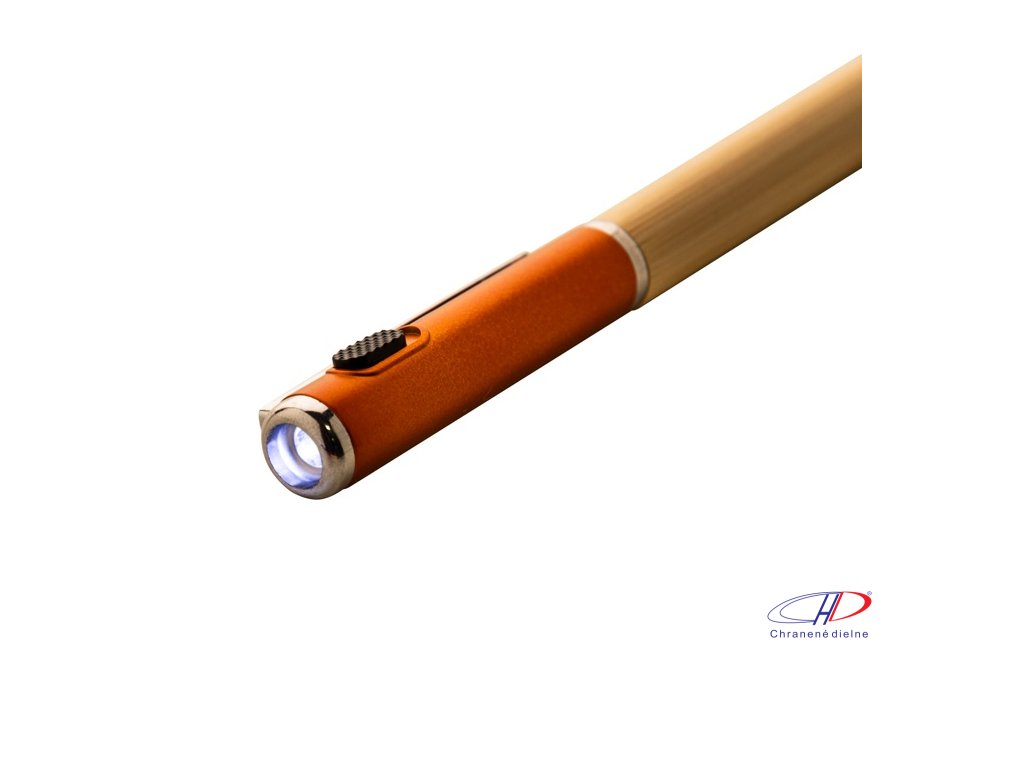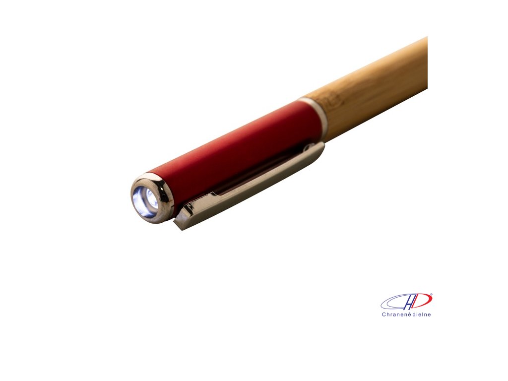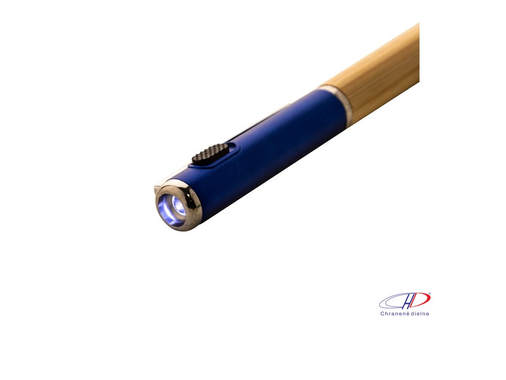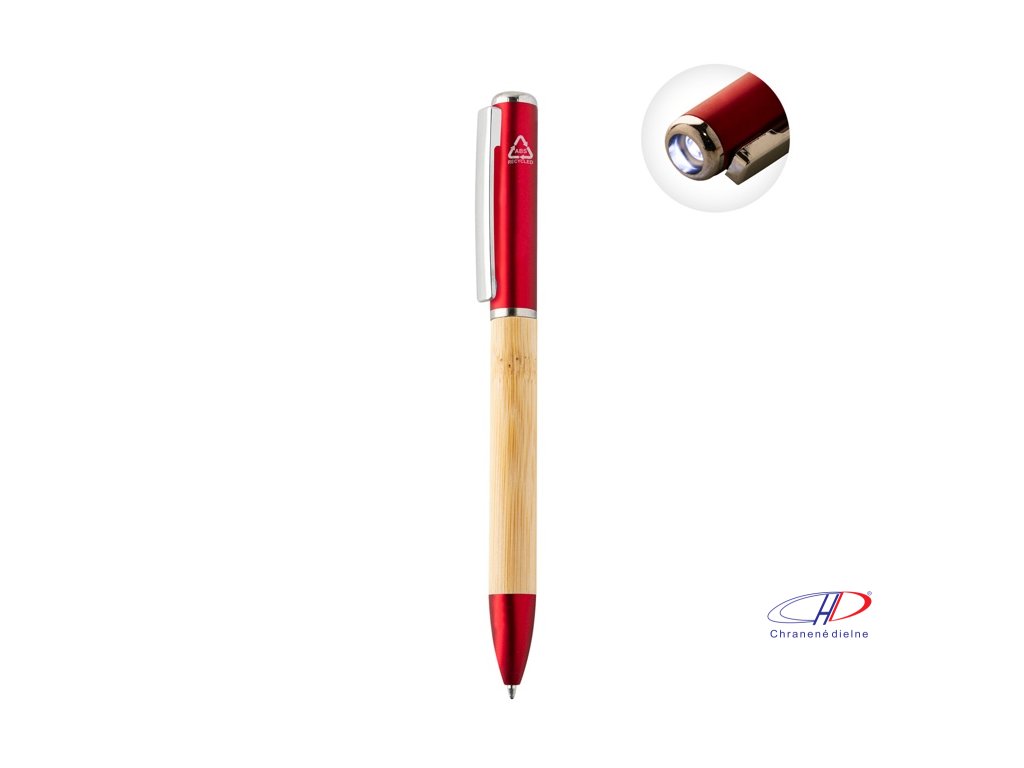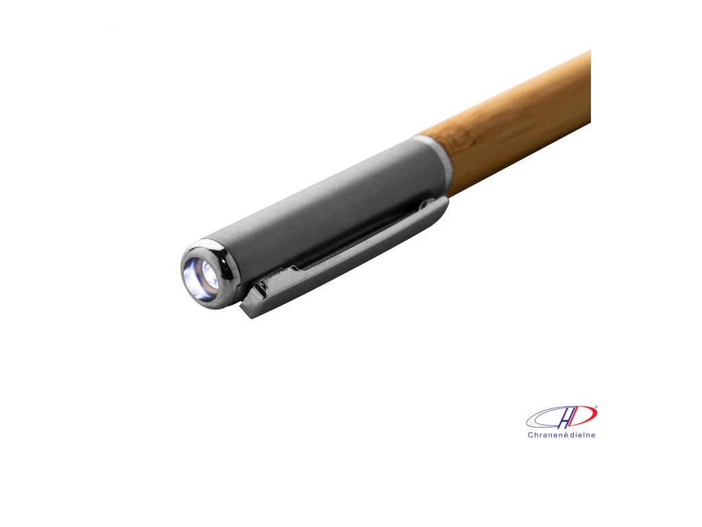 Guľôčkové pero z bambusu a recyklovaného ABS plastu s 1 LED svietidlom.