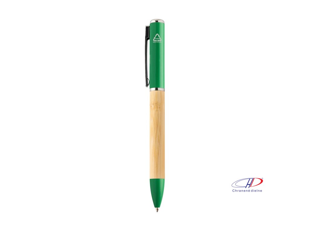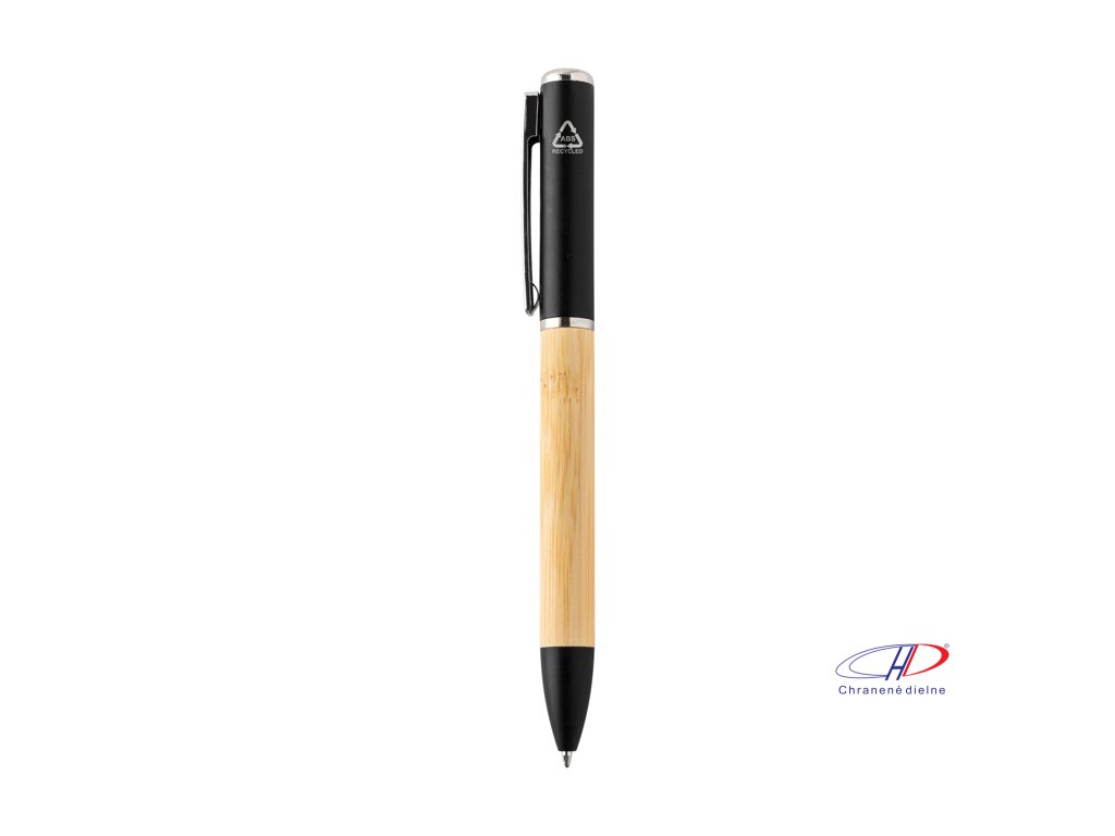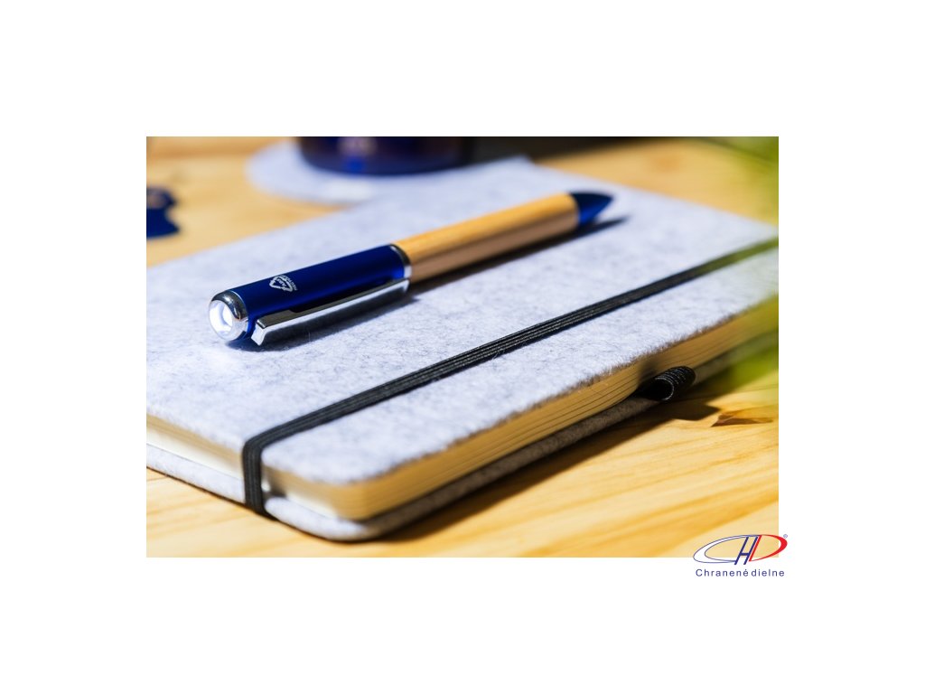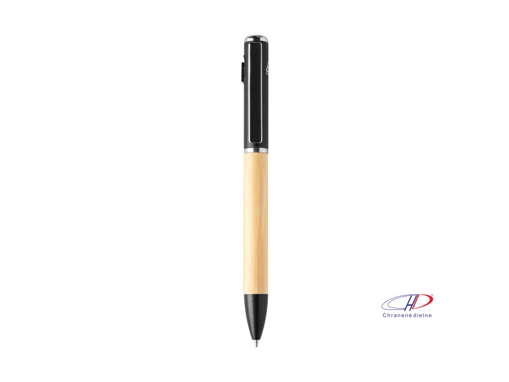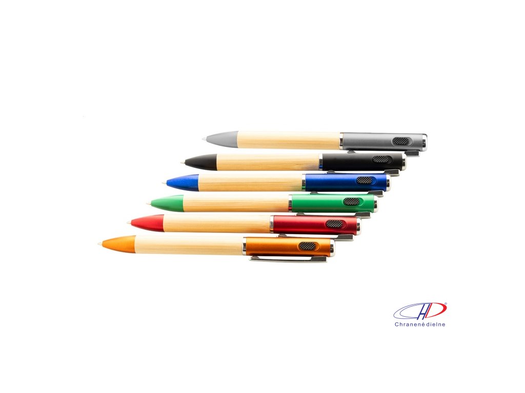 Guľôčkové pero z bambusu a recyklovaného ABS plastu s 1 LED svietidlom.