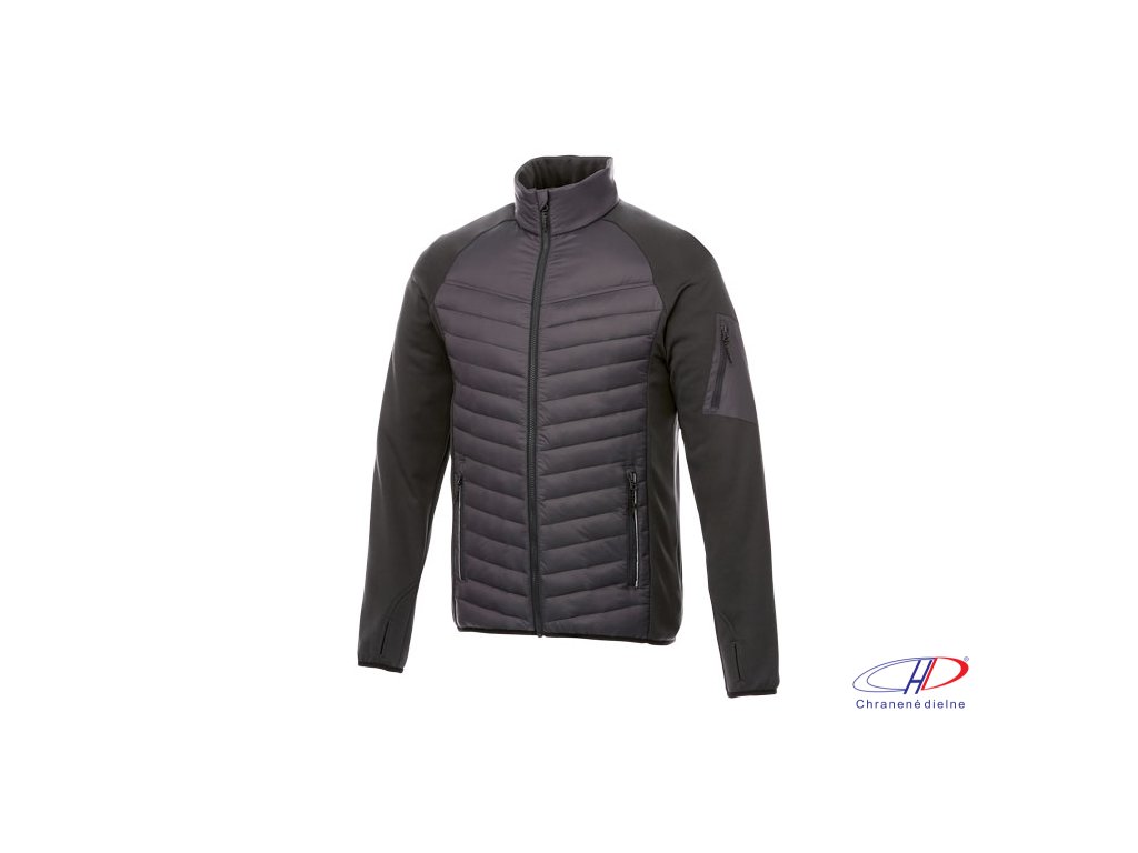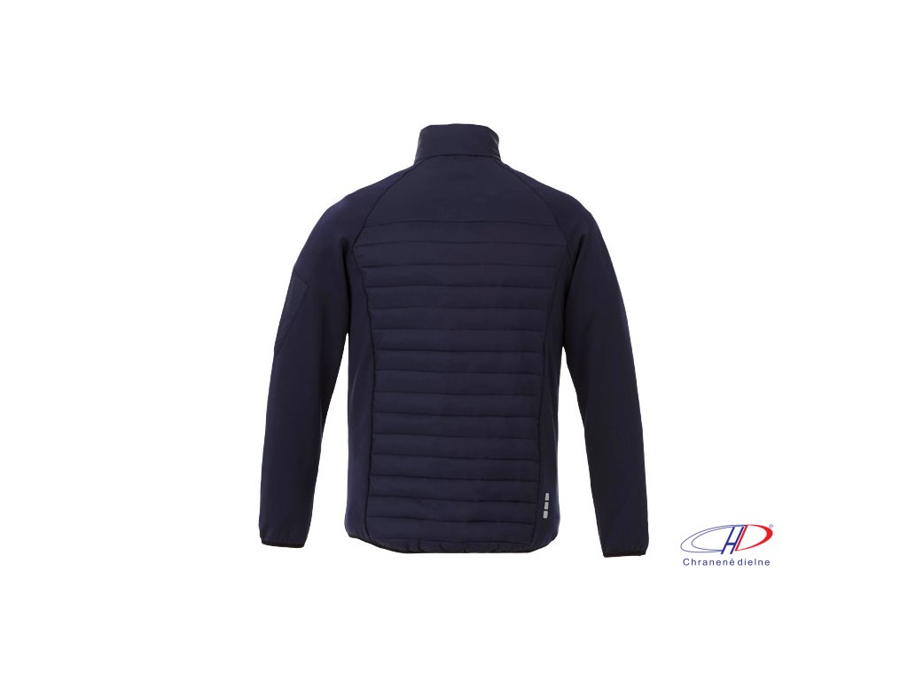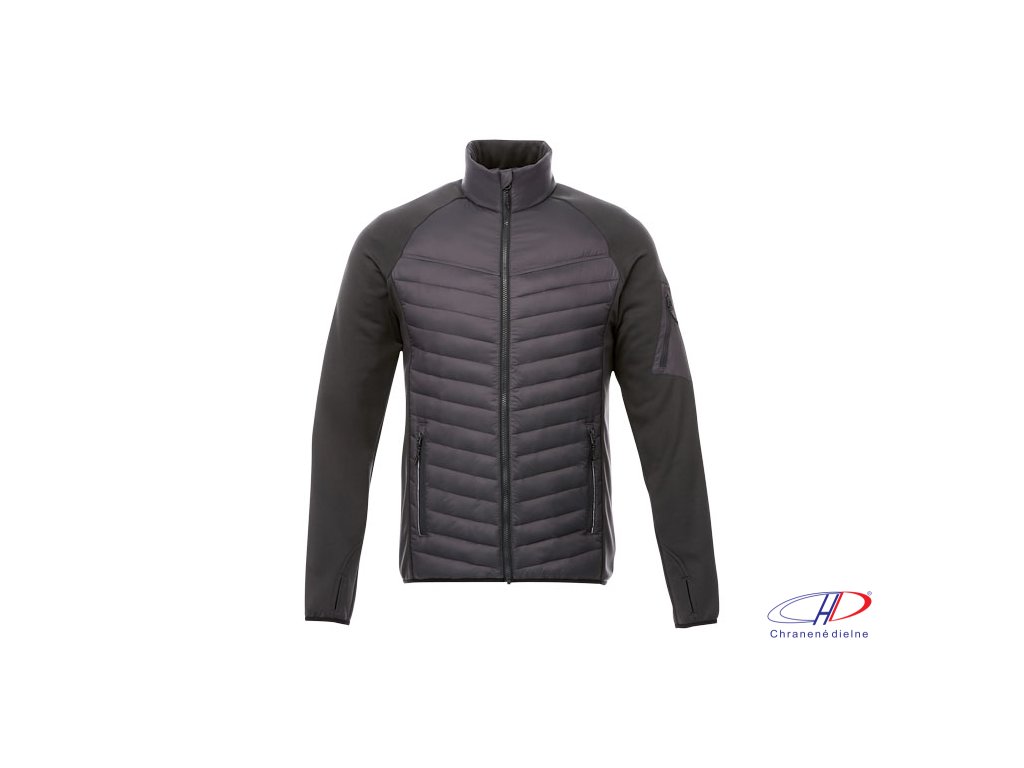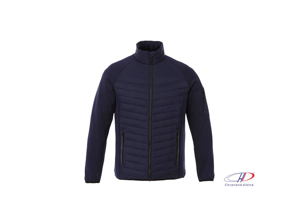 Banff hybrid insulated jacket. Inner stormflap with chinguard.Interior media exit port with cord guide.Dropped back hem.Elasticated binding in contrast colour.Piping detail.Reflective details.Centre front contrast coil zipper.Easy grip zipper pullers.Hang