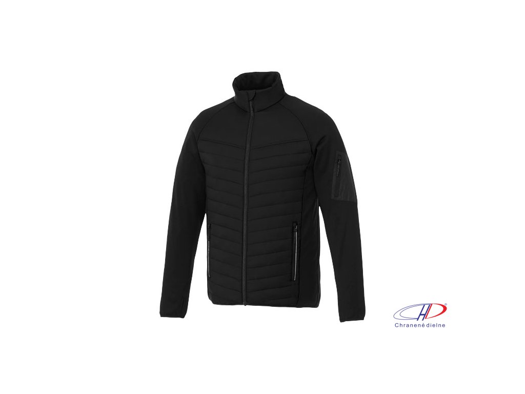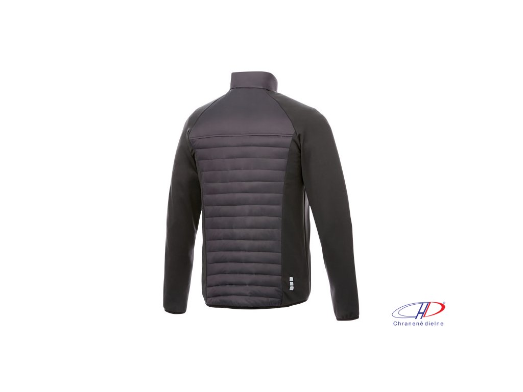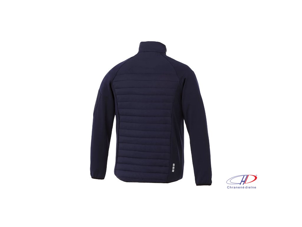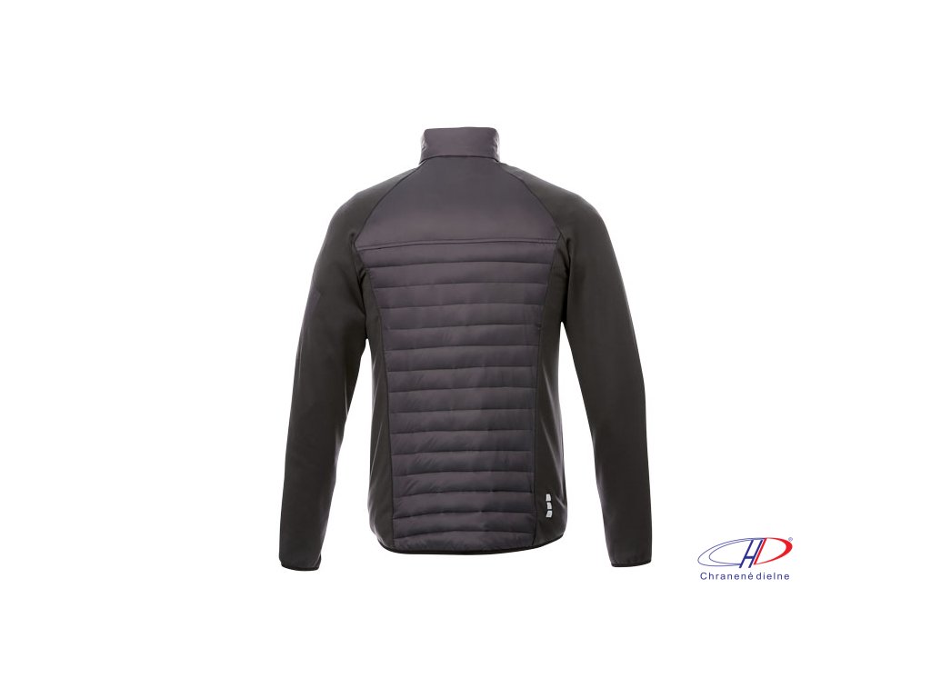 Banff hybrid insulated jacket. Inner stormflap with chinguard.Interior media exit port with cord guide.Dropped back hem.Elasticated binding in contrast colour.Piping detail.Reflective details.Centre front contrast coil zipper.Easy grip zipper pullers.Hang