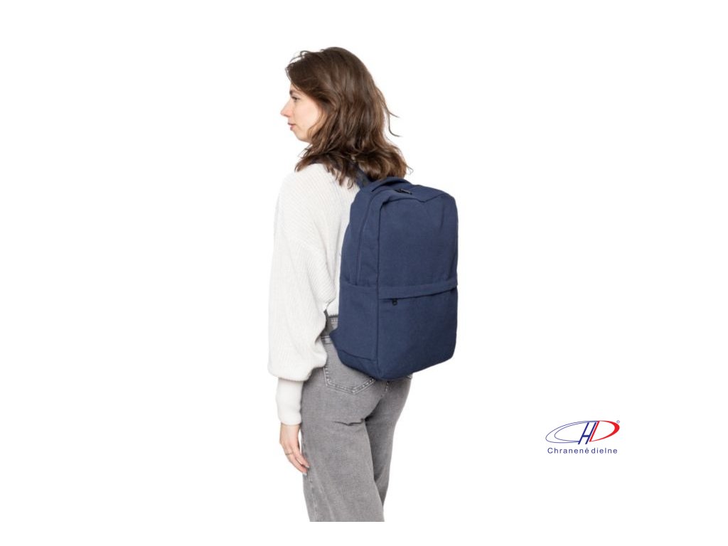 Batoh z recyklovanej polybavlny (330 g/m2). Veľké vrecko na zips na 15-palcový notebook, 2 vnútorné priehradky a 2 vonkajšie priehradky, bočné vrecko a malé predné vrecko na zips. Polstrované nastaviteľné popruhy. Kapacita 14 l. Nosnosť 13 kg.Dodatočné parametre