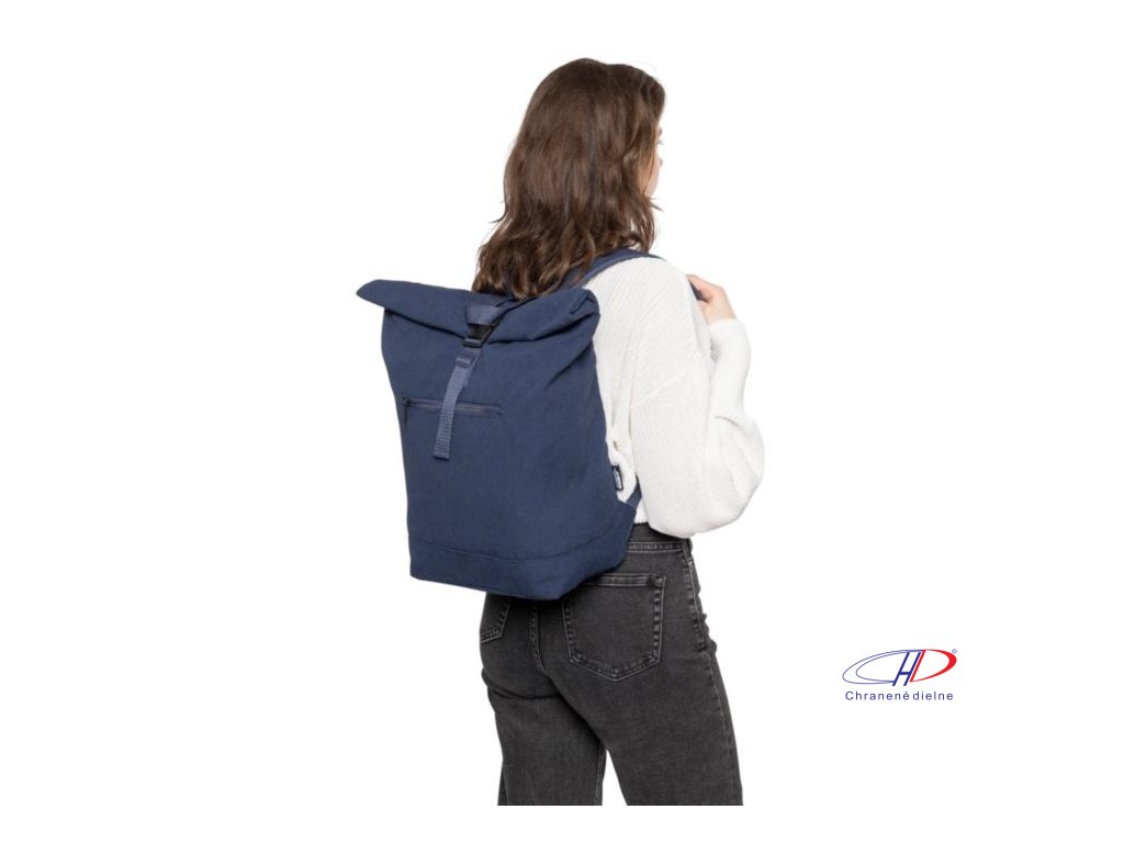 Rolovací baroh z recyklovanej polybavlny (330 g/m2) s podšívkou z 210D polyesteru. Objem 15 l, veľké vrecko na zips na 15-palcový notebook, 2 vnútorné priehradky a vonkajšie vrecko. Pútko na prenášanie, polstrované nastaviteľné popruhy. Nosnosť 14 kg.Dodatočné parametre