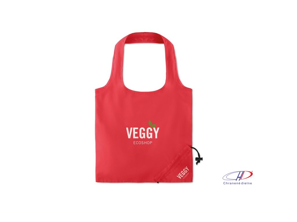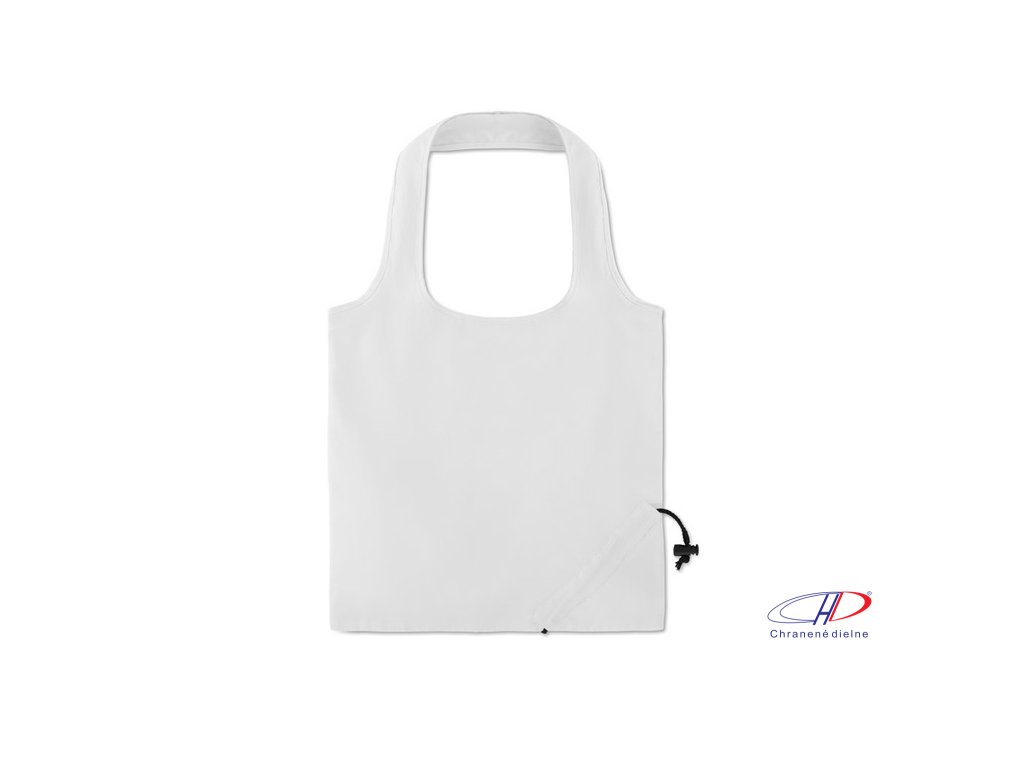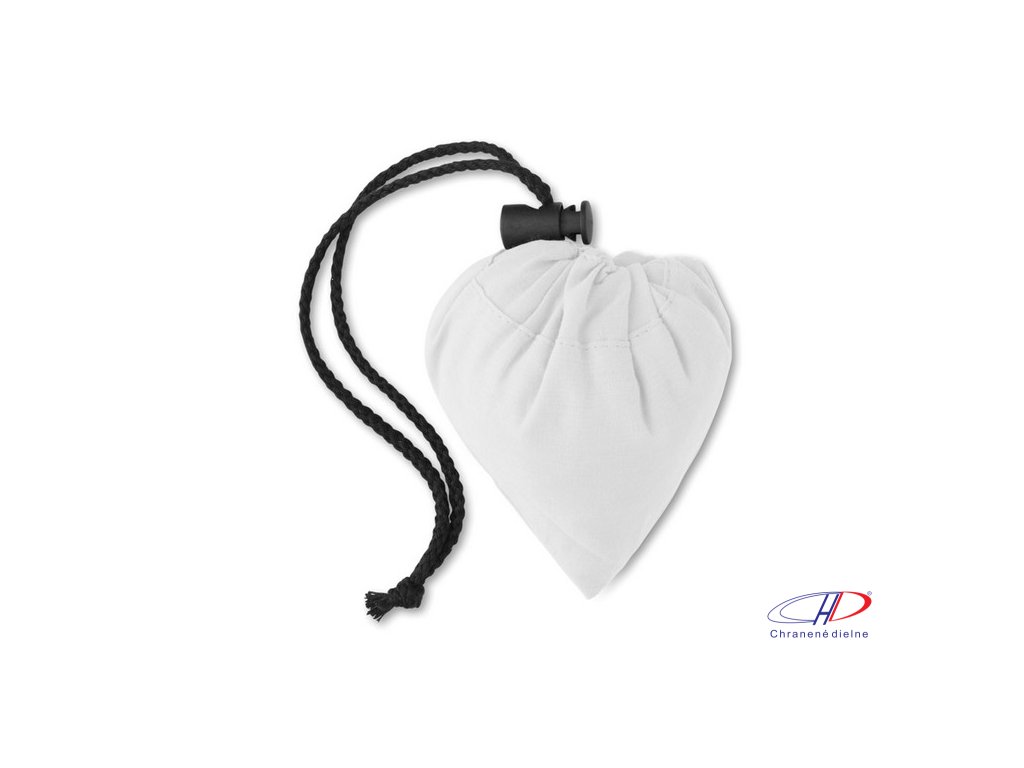 Skladacia nákupná taška zo 105 g/m2 bavlny s krátkymi ušami a sťahovacou šnúrkou. 40 x 38 cm.