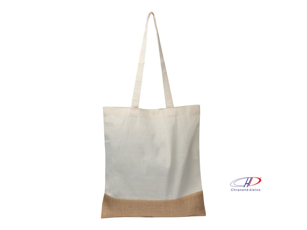Nákupná taška šetrná k životnému prostrediu, vyrobená z ekologickej bavlny a juty. 38 x 41 cm.