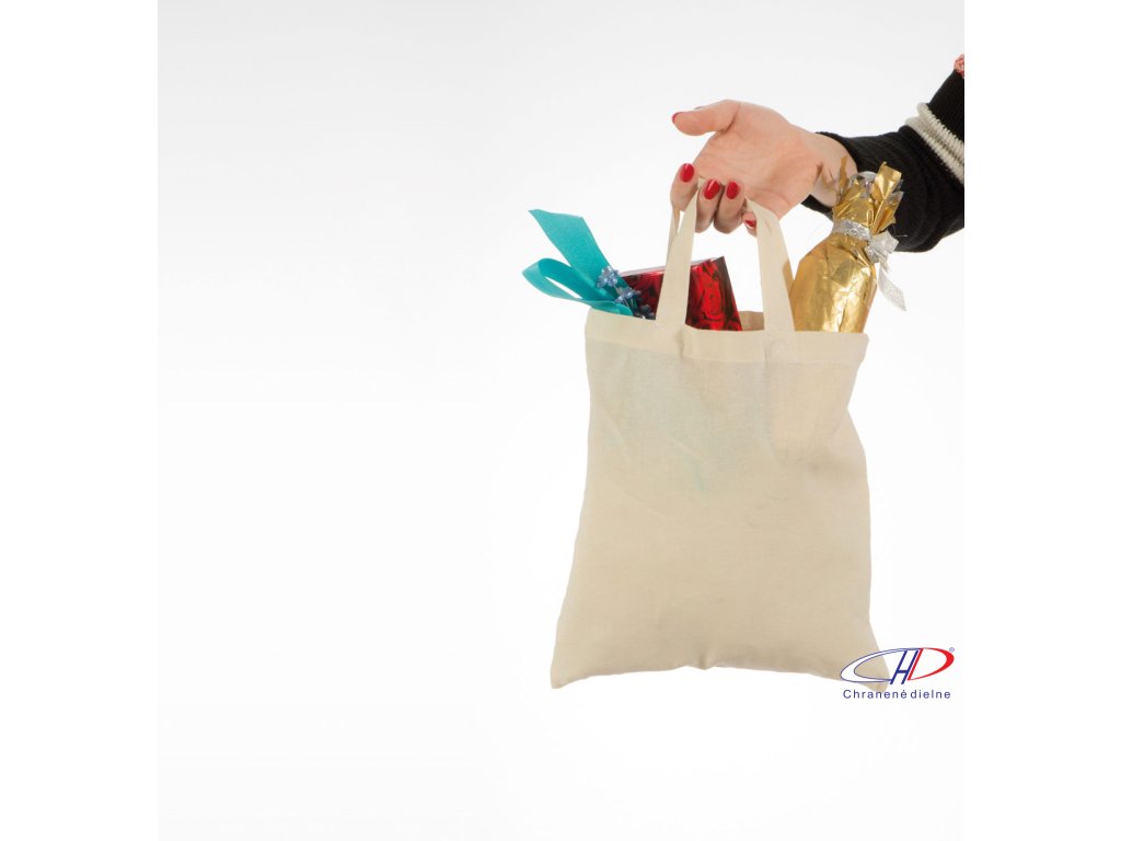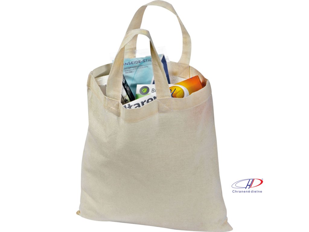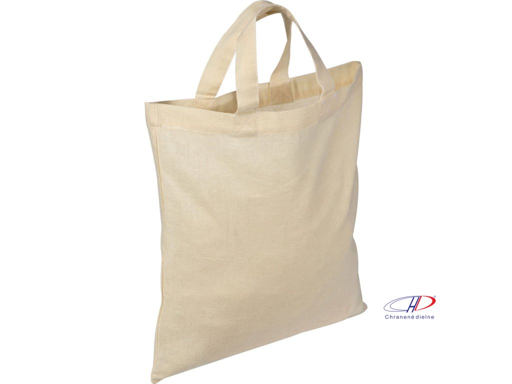 Eco, bavlnená taška prírodnej farby s krátkymi ušami. Vyrobená z odolného materiálu, 100% bavlny. Možnosť prania, 140 g. 28 x 32 cm.