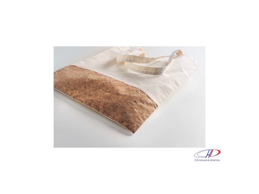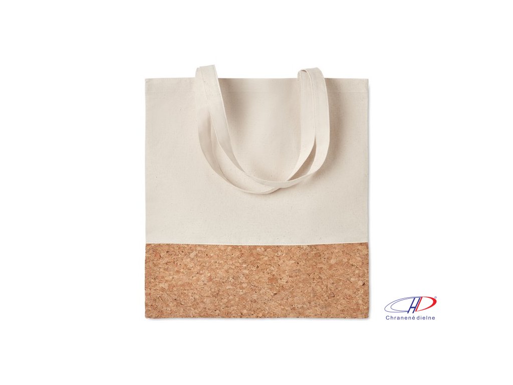 Bavlnená (160g/m2) nákupná taška s korkovým detailom Dlhé držadlá. 38 x 41 cm.