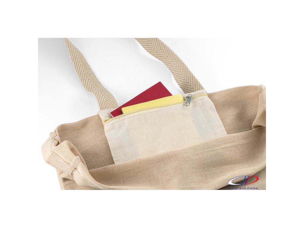 Taška Juco (275 g/m) s vnútorným vreckom na zips zo 100% bavlny (120 g/m). Rukoväte z dvojfarebného bavlneného popruhu.