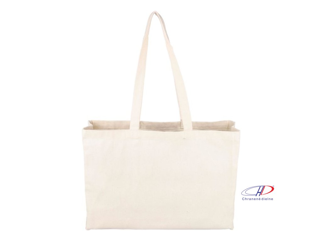 Nákupná taška z bavlny Oeko-Tex® (280 g/m2) s 10 cm klinom. Prírodná bavlna. Maximálna nosná hmotnosť: cca. 8 kg. Obsahuje štítok Oeko-Tex®.Dodatočné parametre