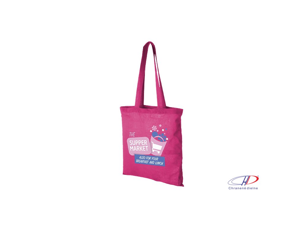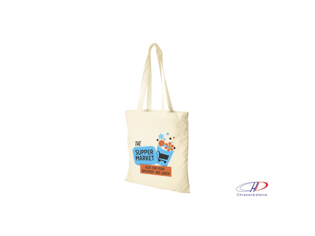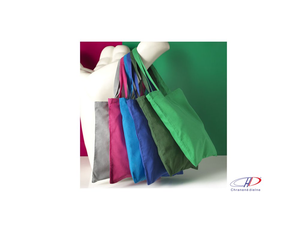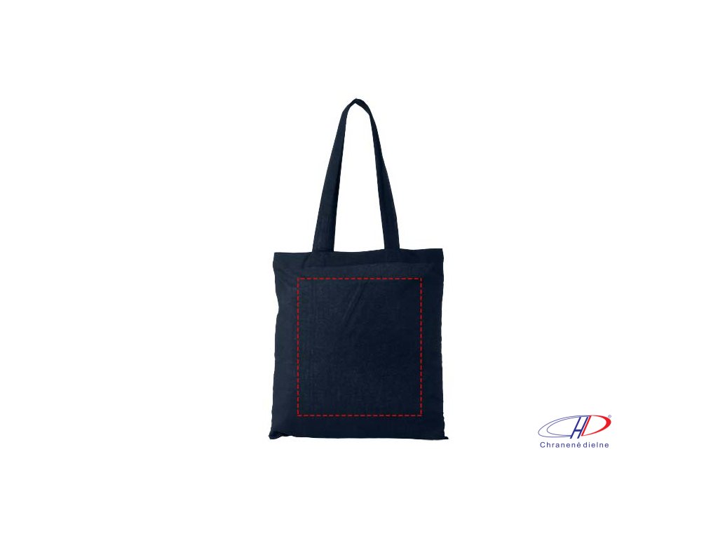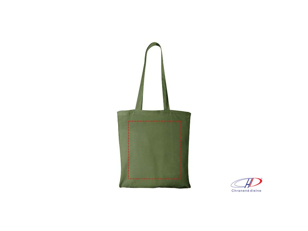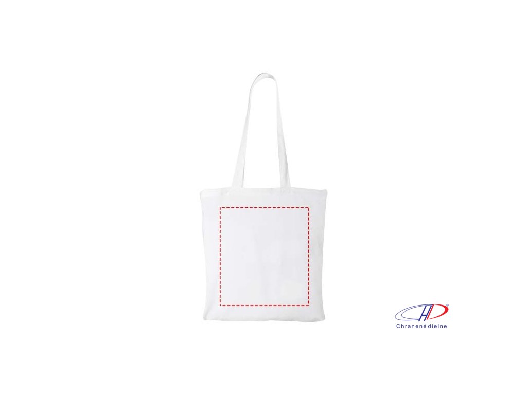 Taška s otvoreným hlavným priestorom. Nosná výška popruhov 30 cm. Bavlna 100 g/m2.