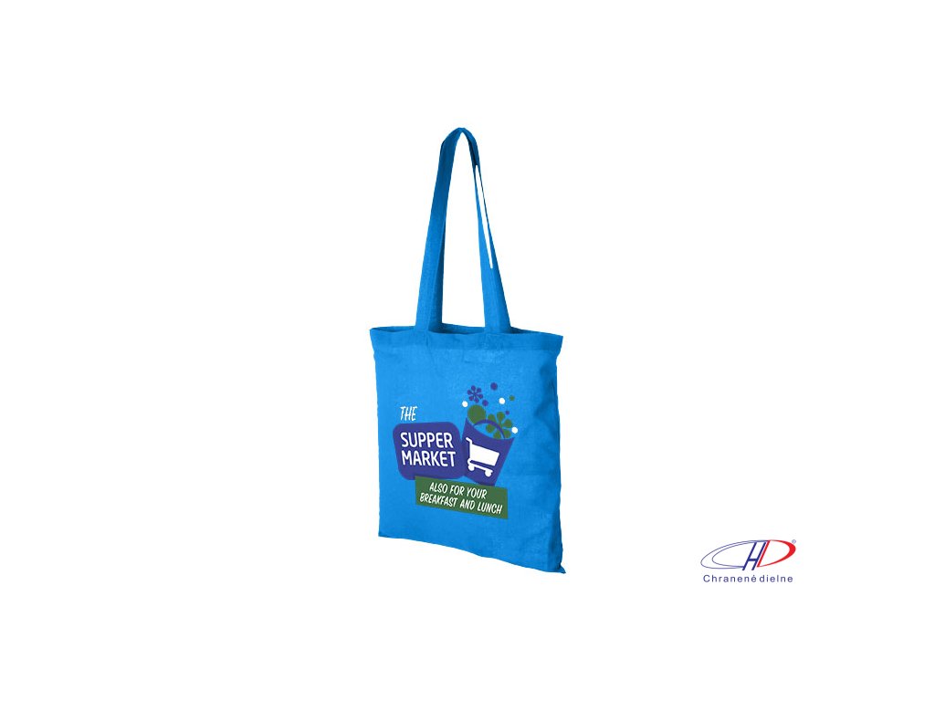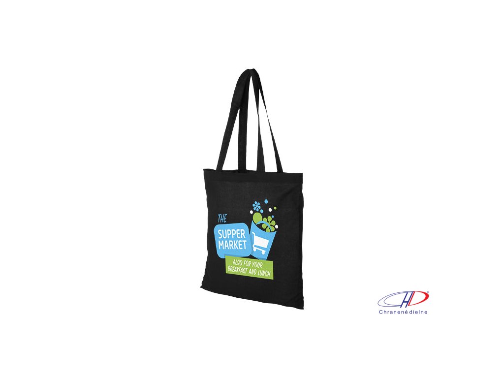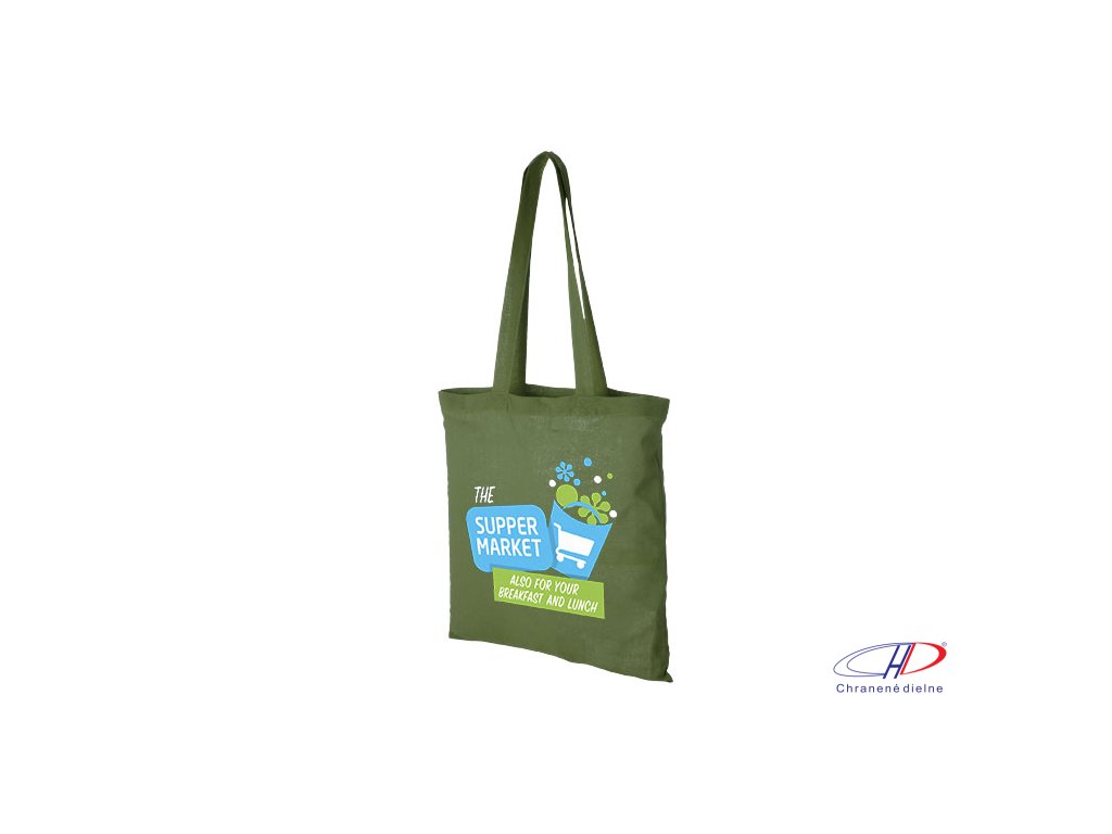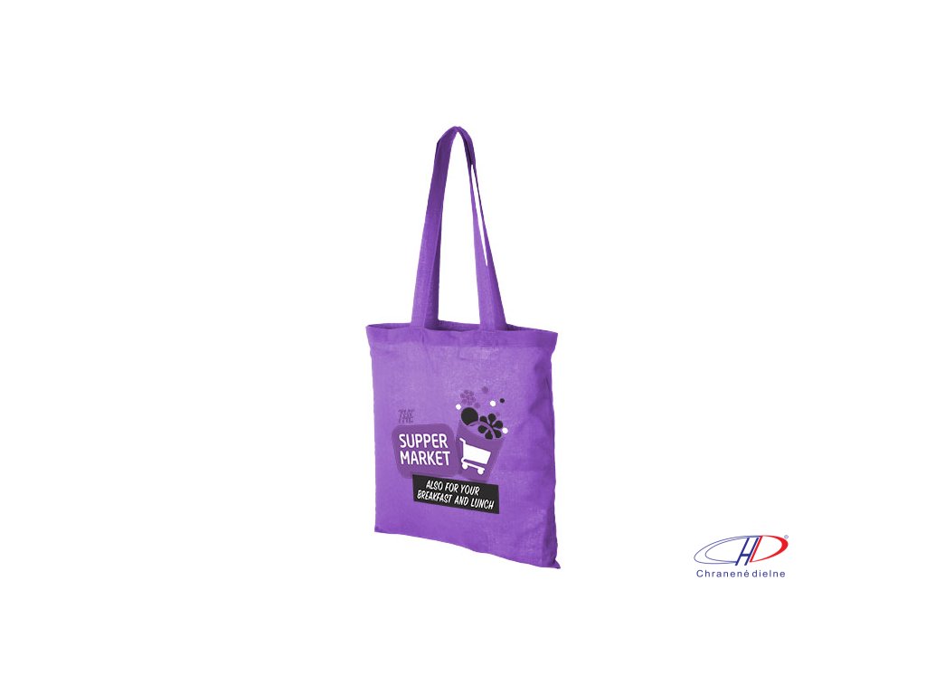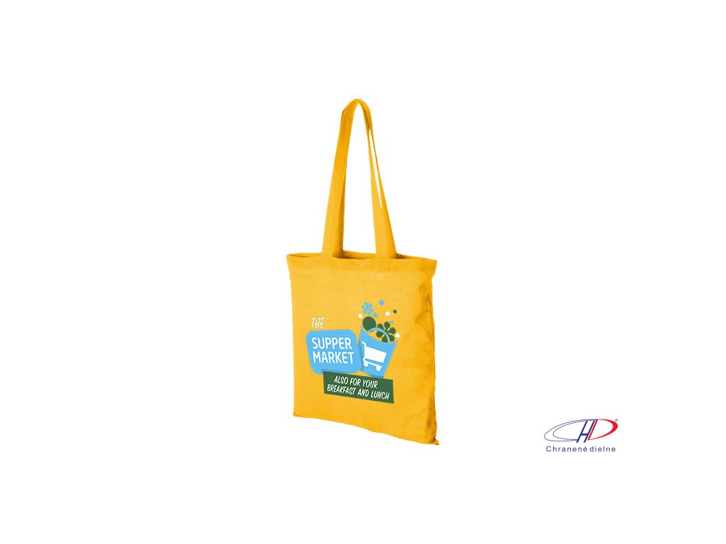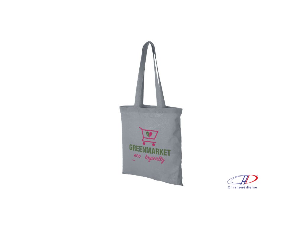 Taška s otvoreným hlavným priestorom. Nosná výška popruhov 30 cm. Bavlna 100 g/m2.