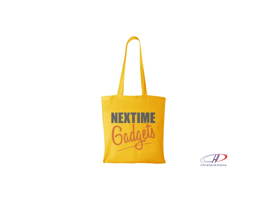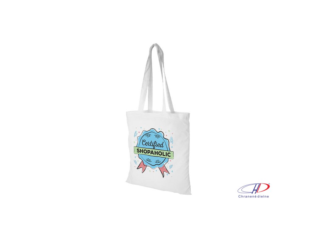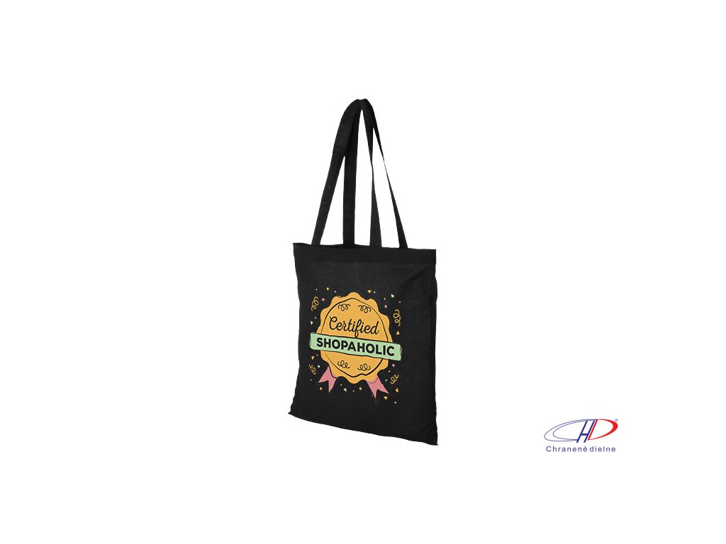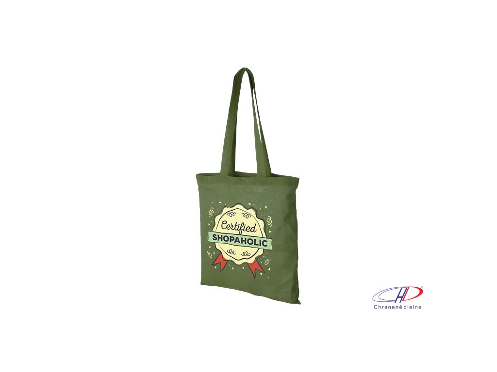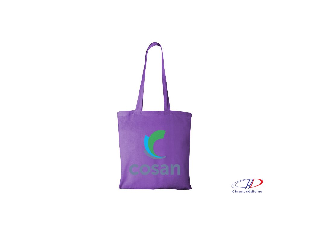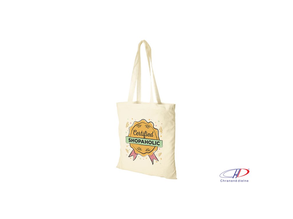 Taška s otvoreným hlavným priestorom. Nosná výška popruhov 30 cm. Bavlna 100 g/m2.