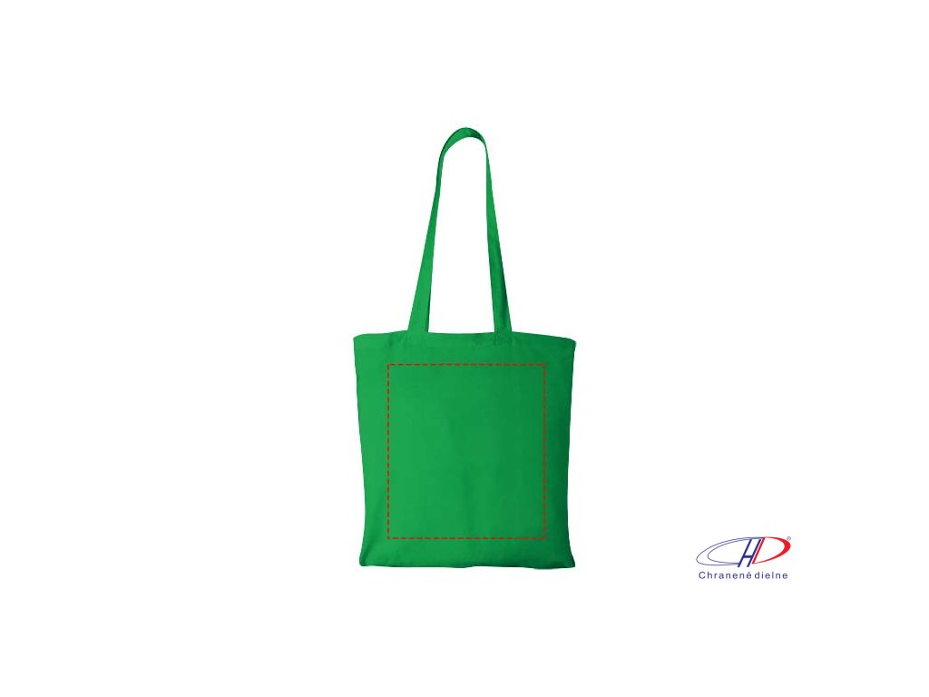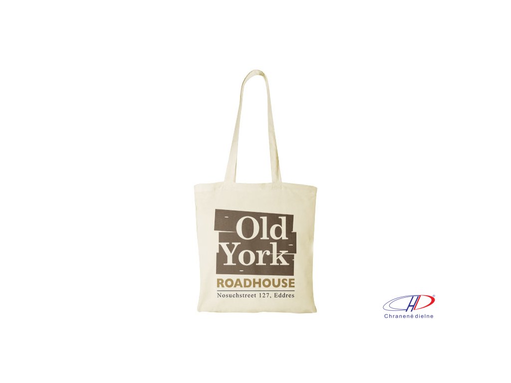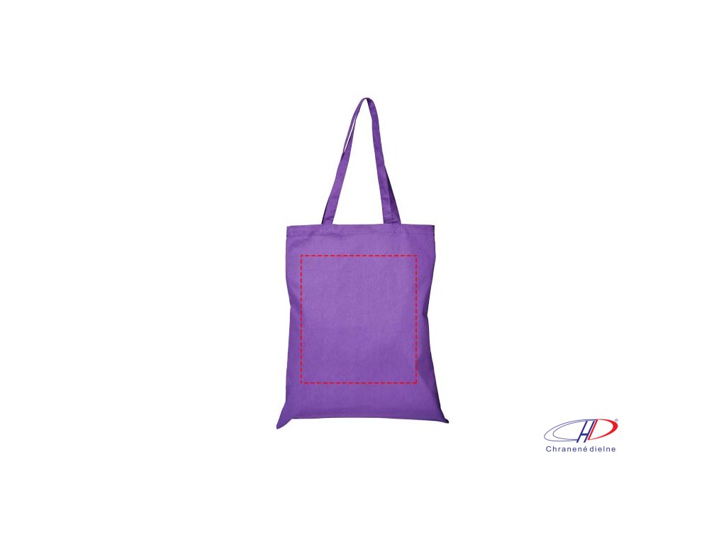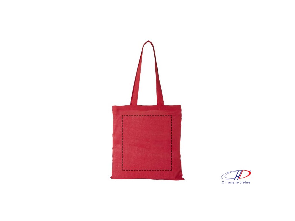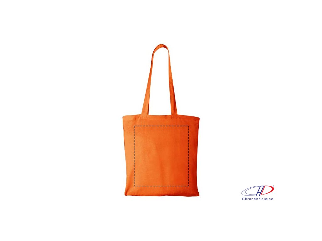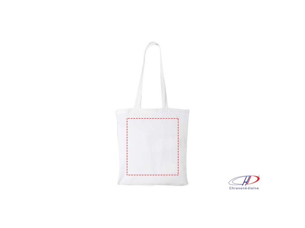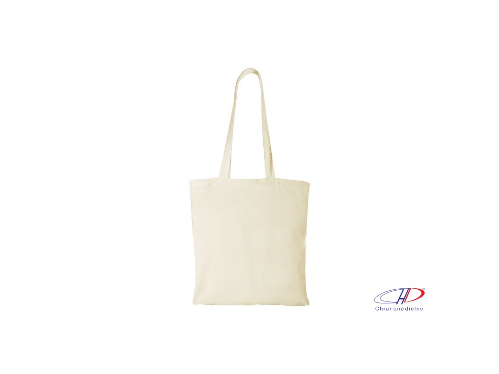 Taška s otvoreným hlavným priestorom. Nosná výška popruhov 26 cm. Bavlna 140 g/m2. 38 x 42 cm