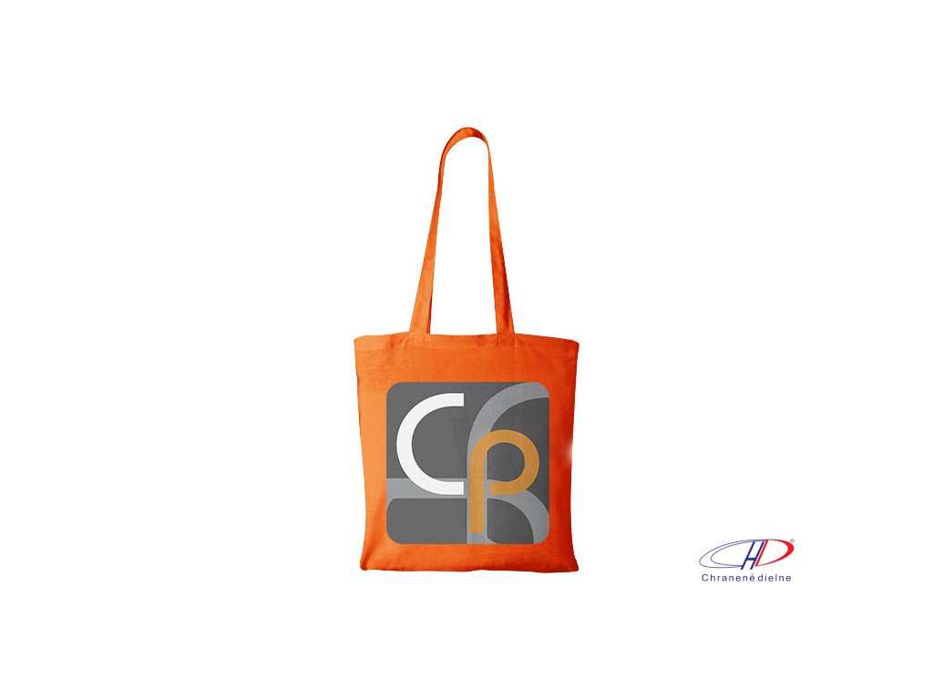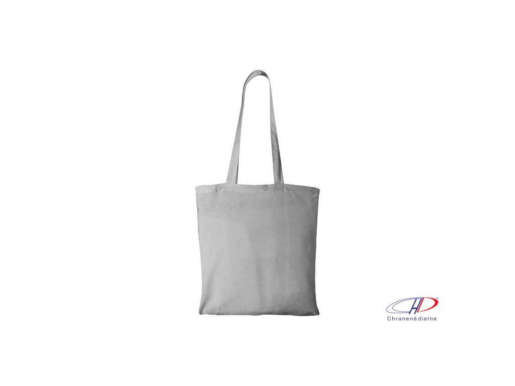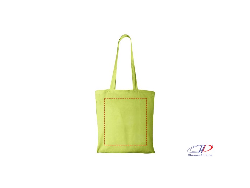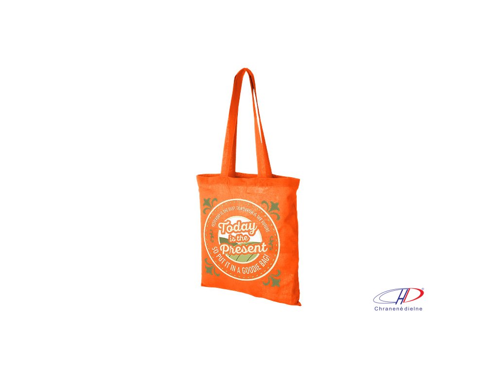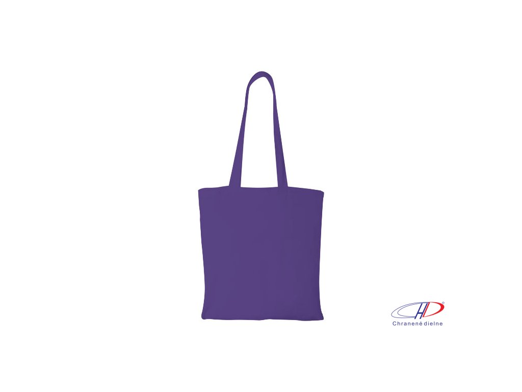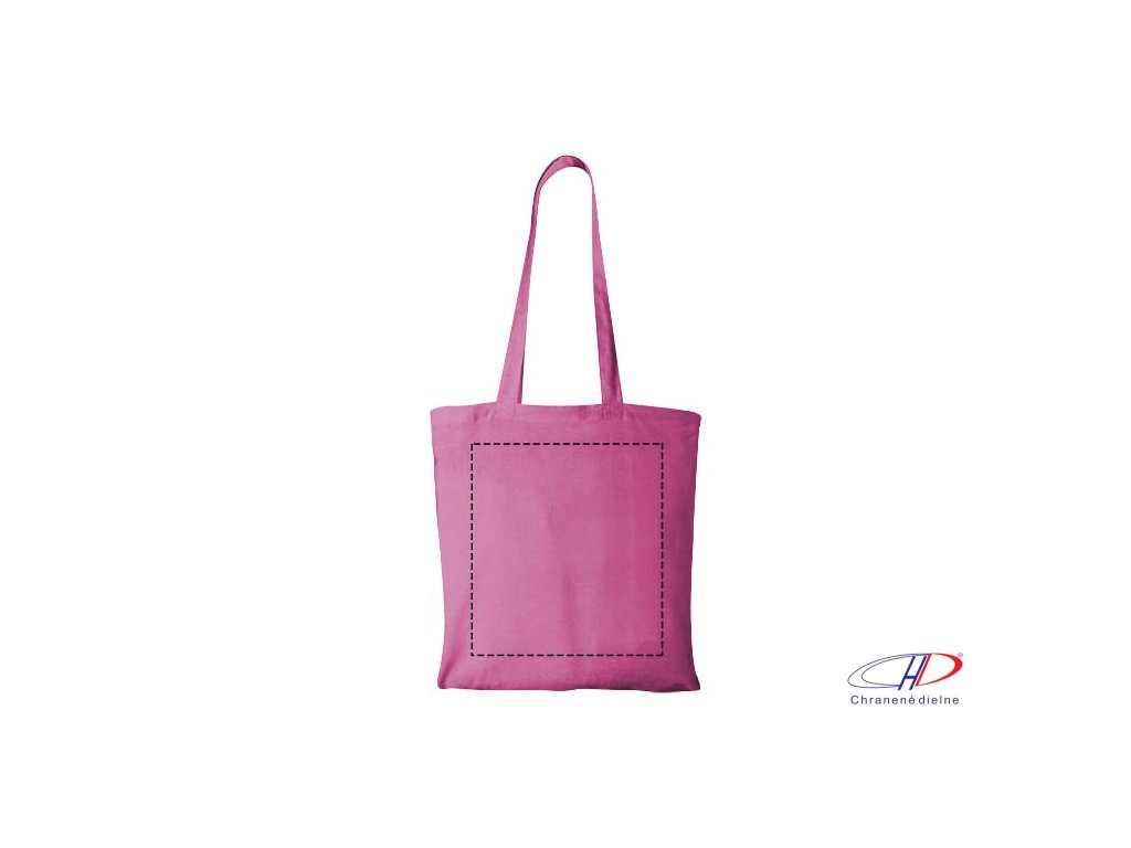 Taška s otvoreným hlavným priestorom. Nosná výška popruhov 26 cm. Bavlna 140 g/m2. 38 x 42 cm