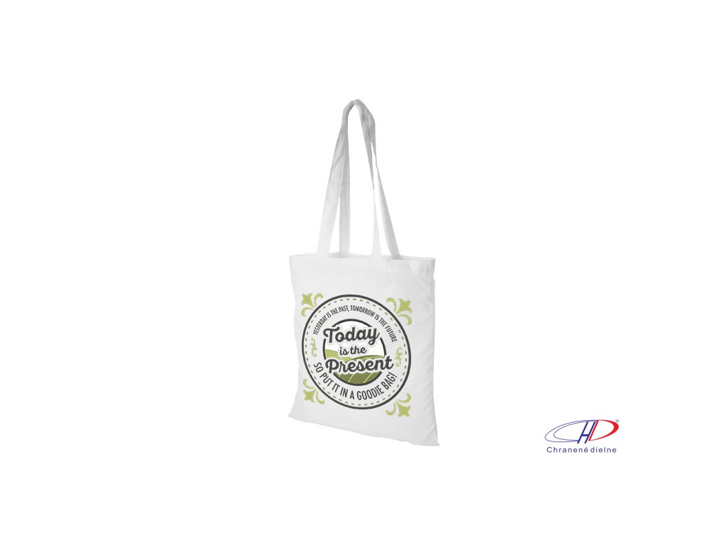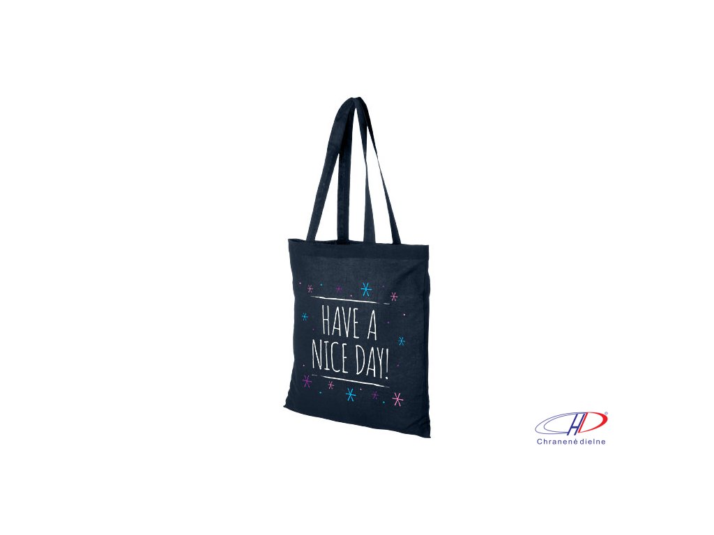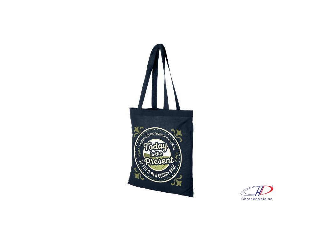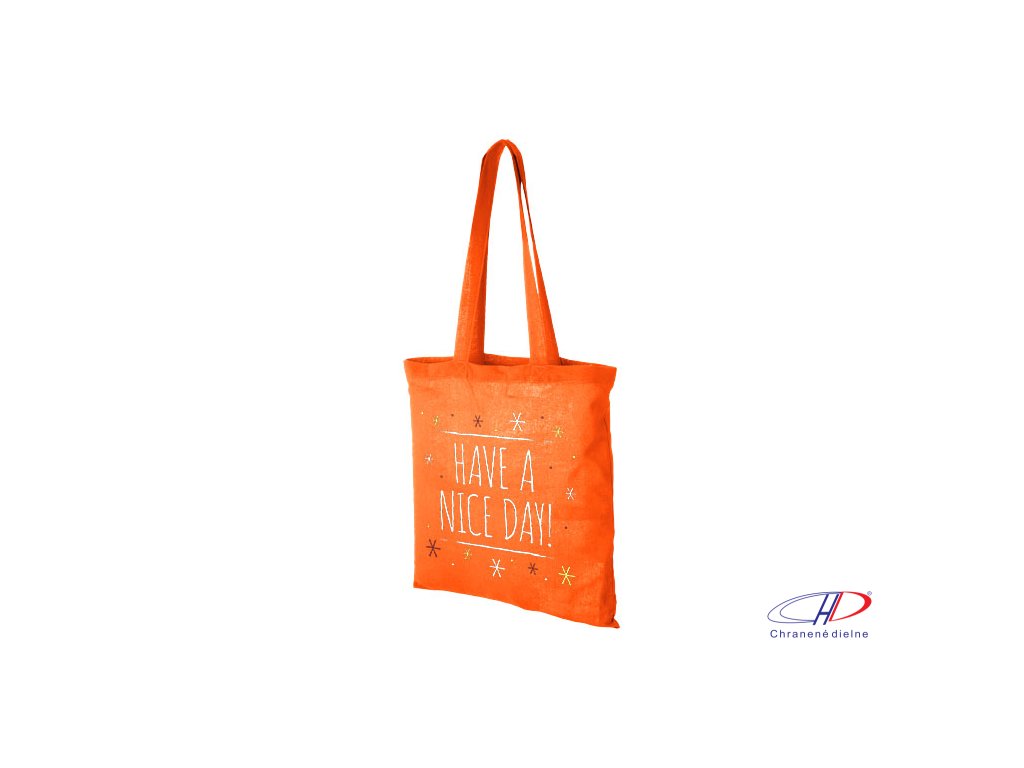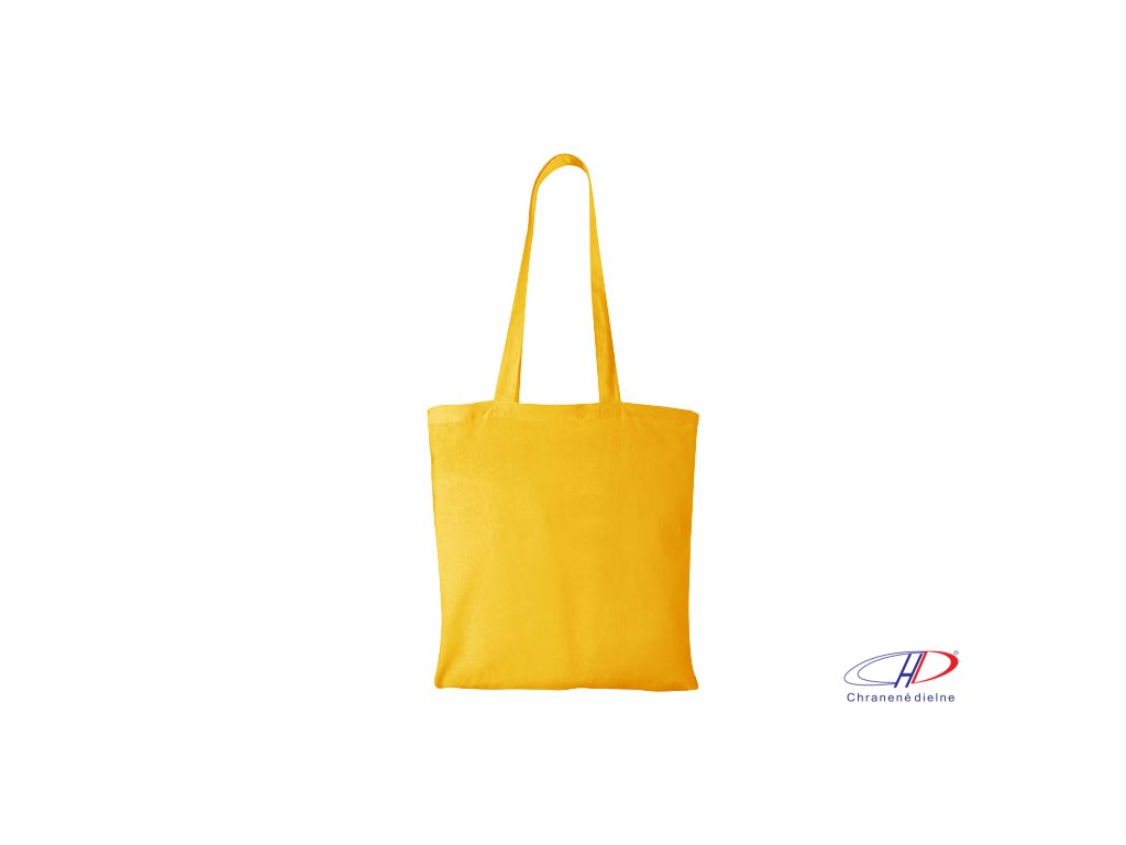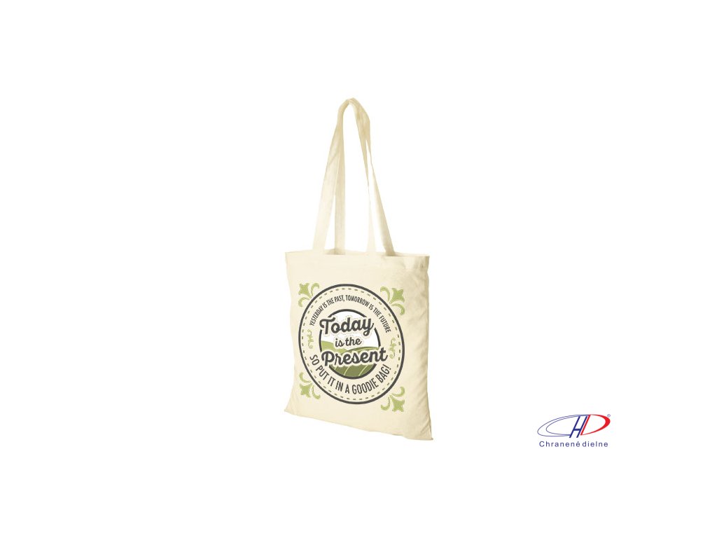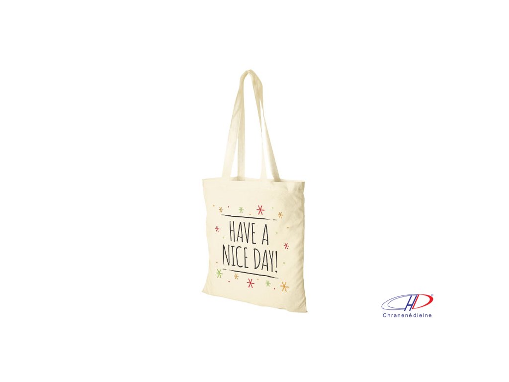 Taška s otvoreným hlavným priestorom. Nosná výška popruhov 26 cm. Bavlna 140 g/m2. 38 x 42 cm