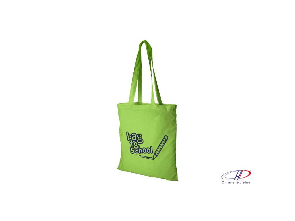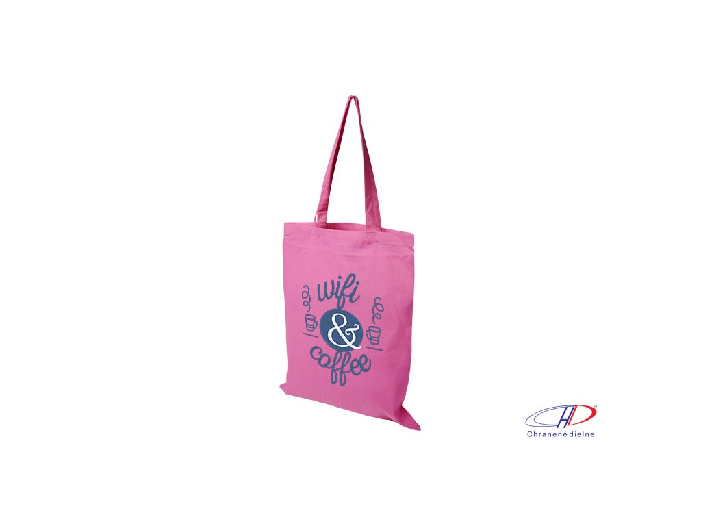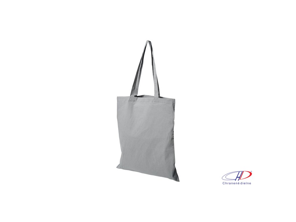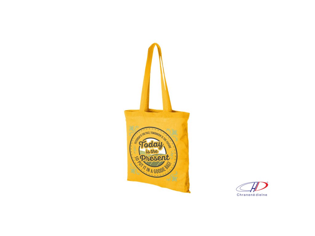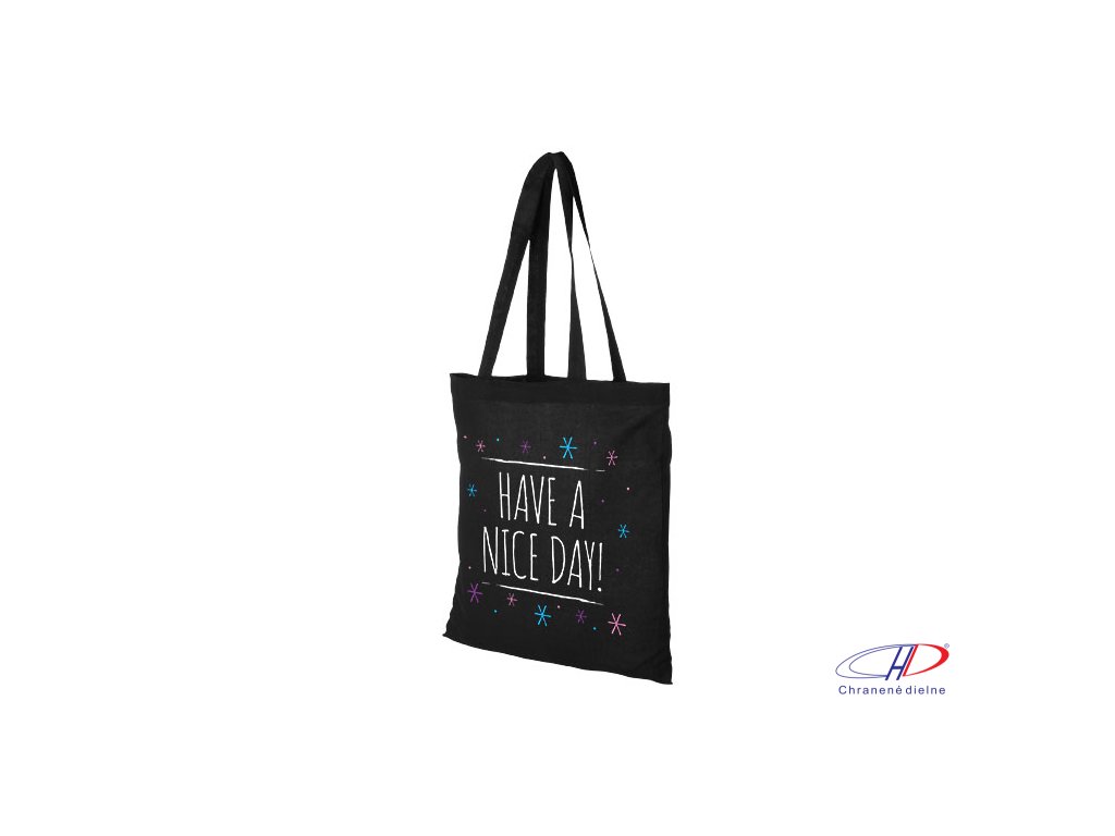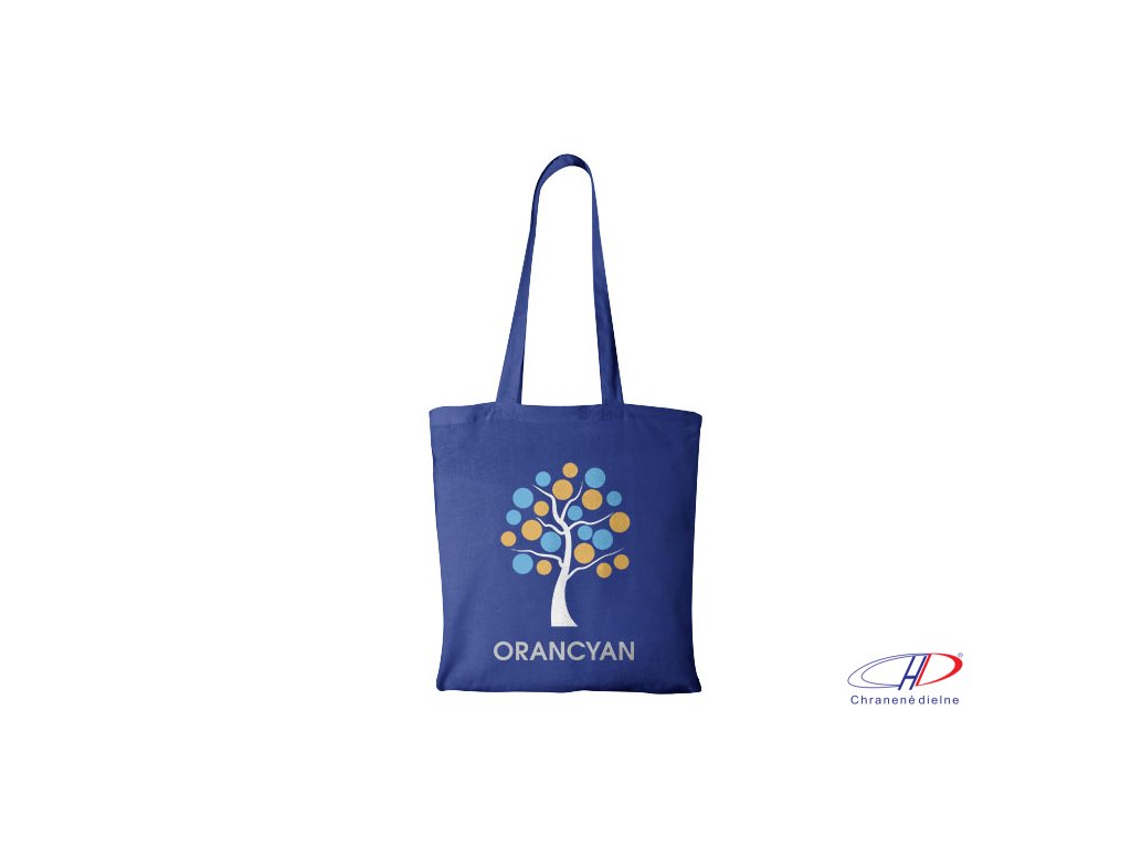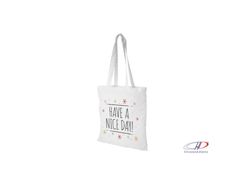 Taška s otvoreným hlavným priestorom. Nosná výška popruhov 26 cm. Bavlna 140 g/m2. 38 x 42 cm