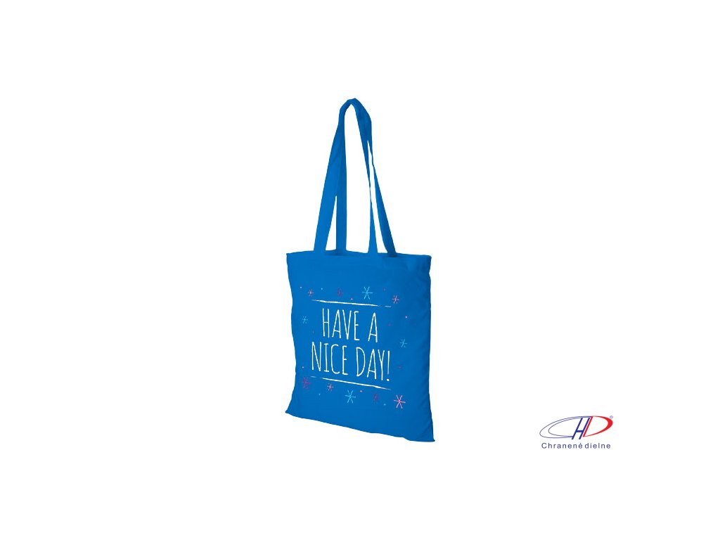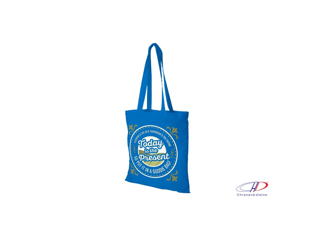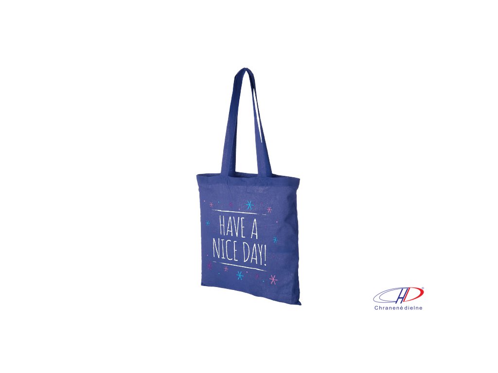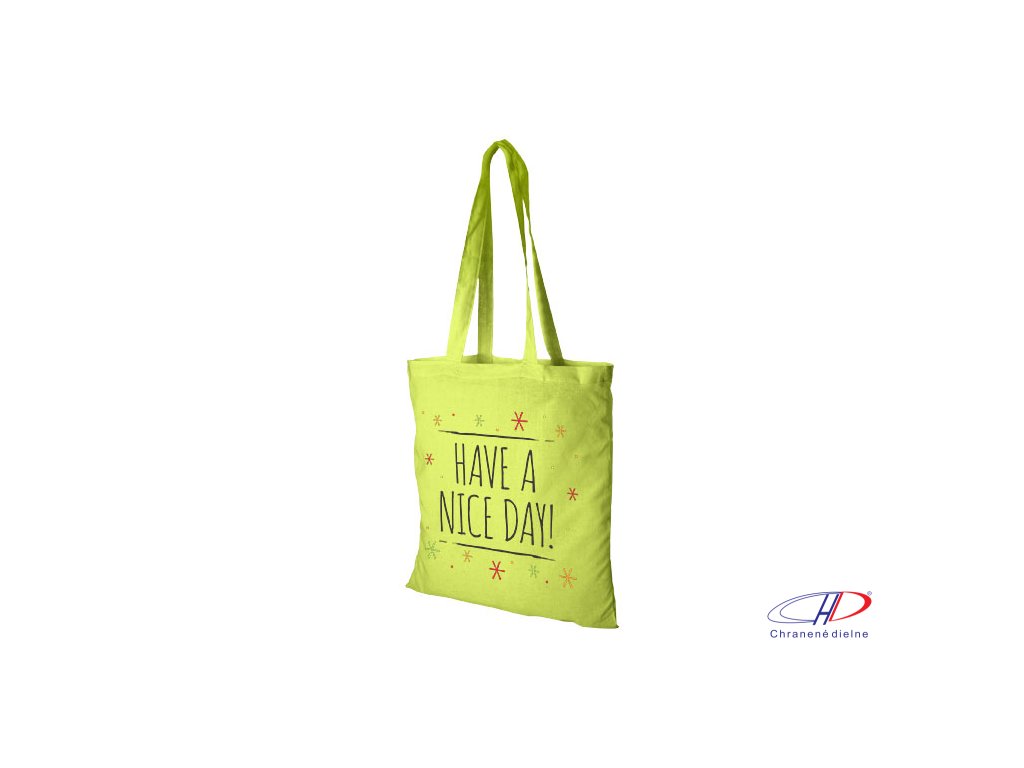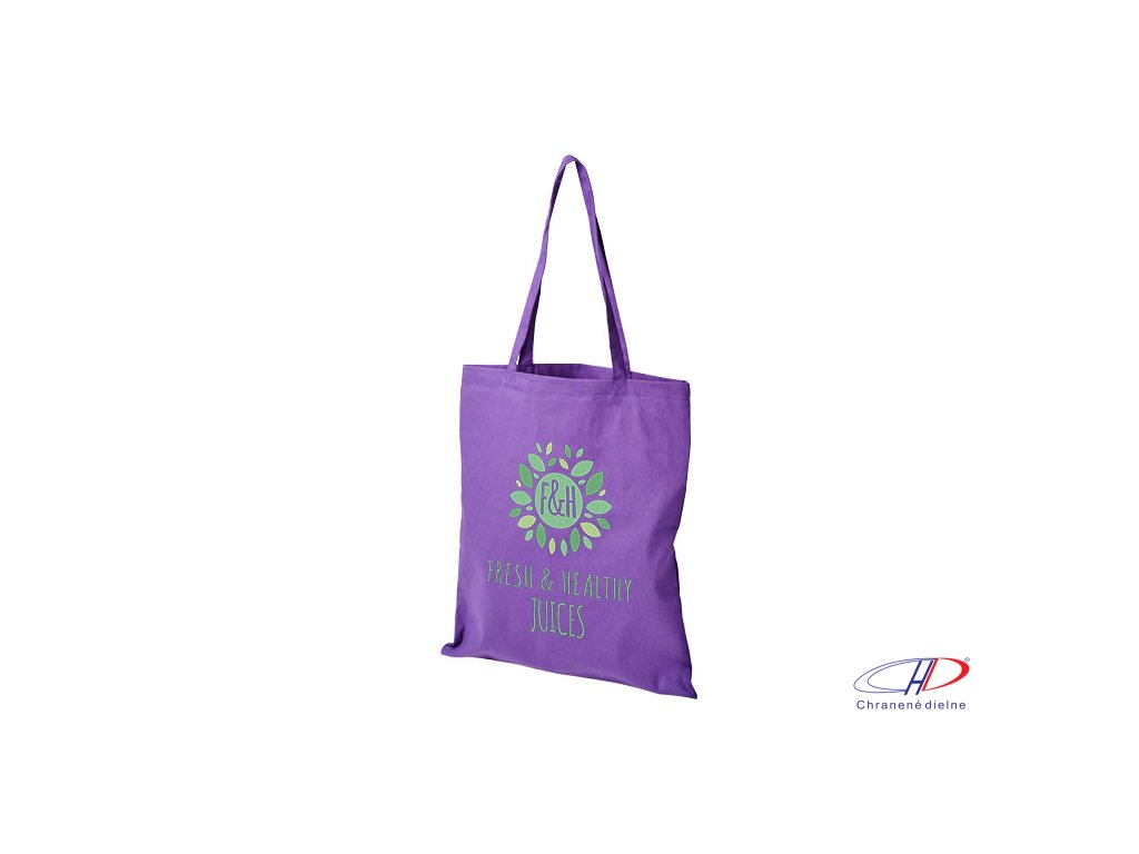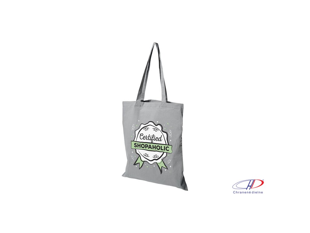 Taška s otvoreným hlavným priestorom. Nosná výška popruhov 26 cm. Bavlna 140 g/m2. 38 x 42 cm