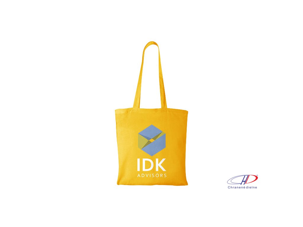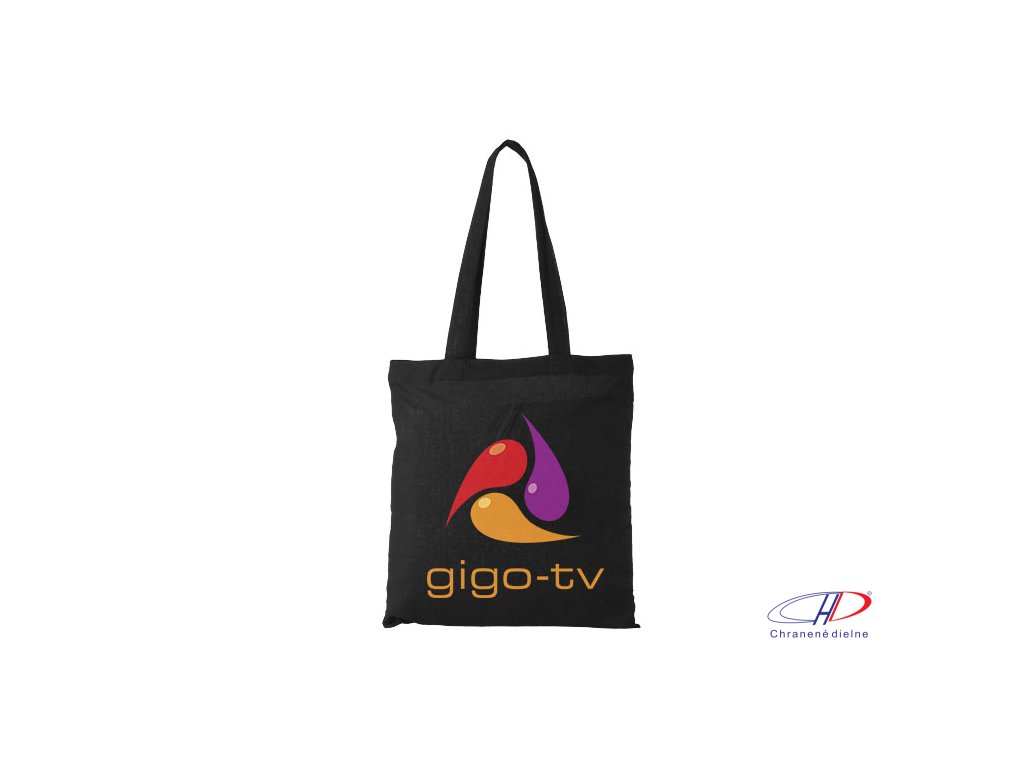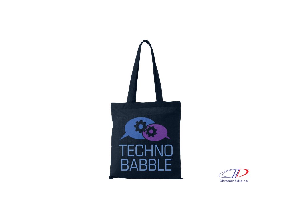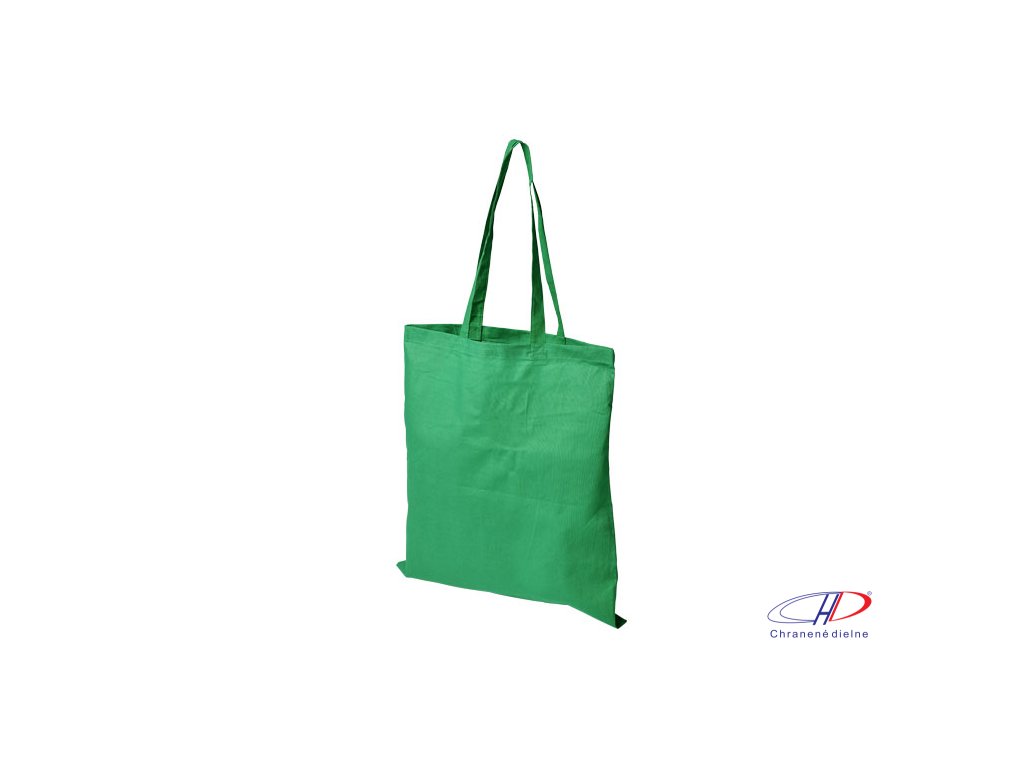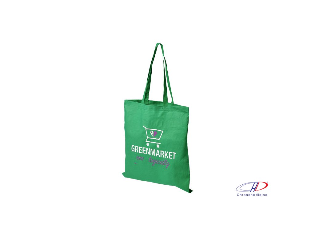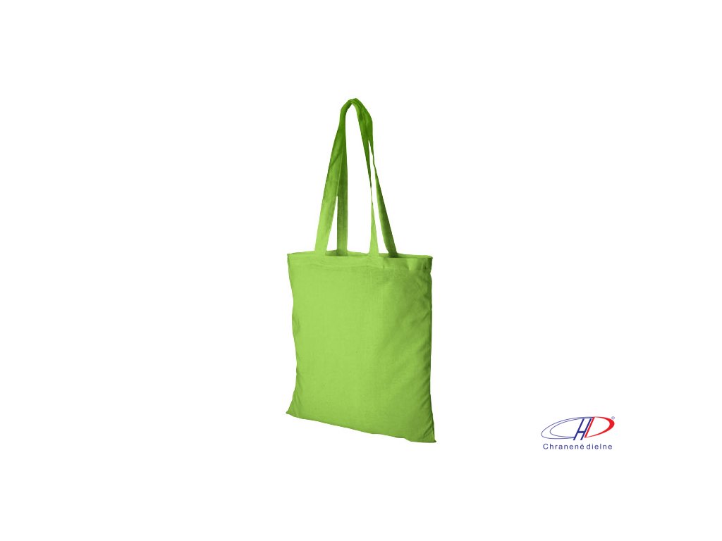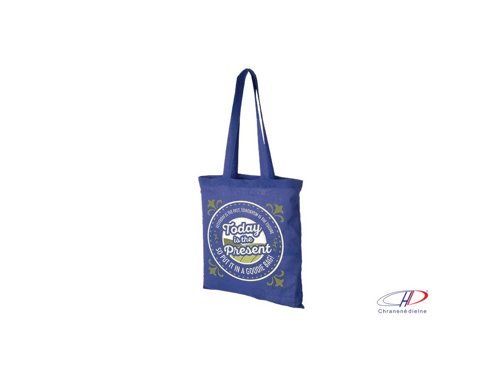 Taška s otvoreným hlavným priestorom. Nosná výška popruhov 26 cm. Bavlna 140 g/m2. 38 x 42 cm