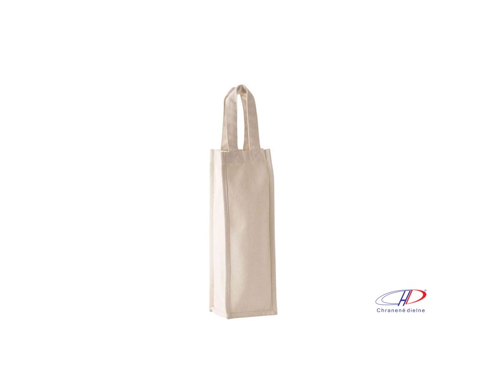 Bavlnená plátenná taška na fľašu. 2 uši z rovnakej látky a v rovnakej farbe. Určené na 1 fľašu. Certifikát STANDARD 100 podľa OEKO-TEX® č. CQ 1164/1, IFTHDodatočné parametre