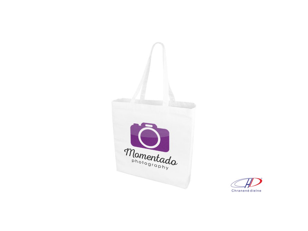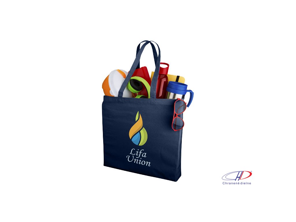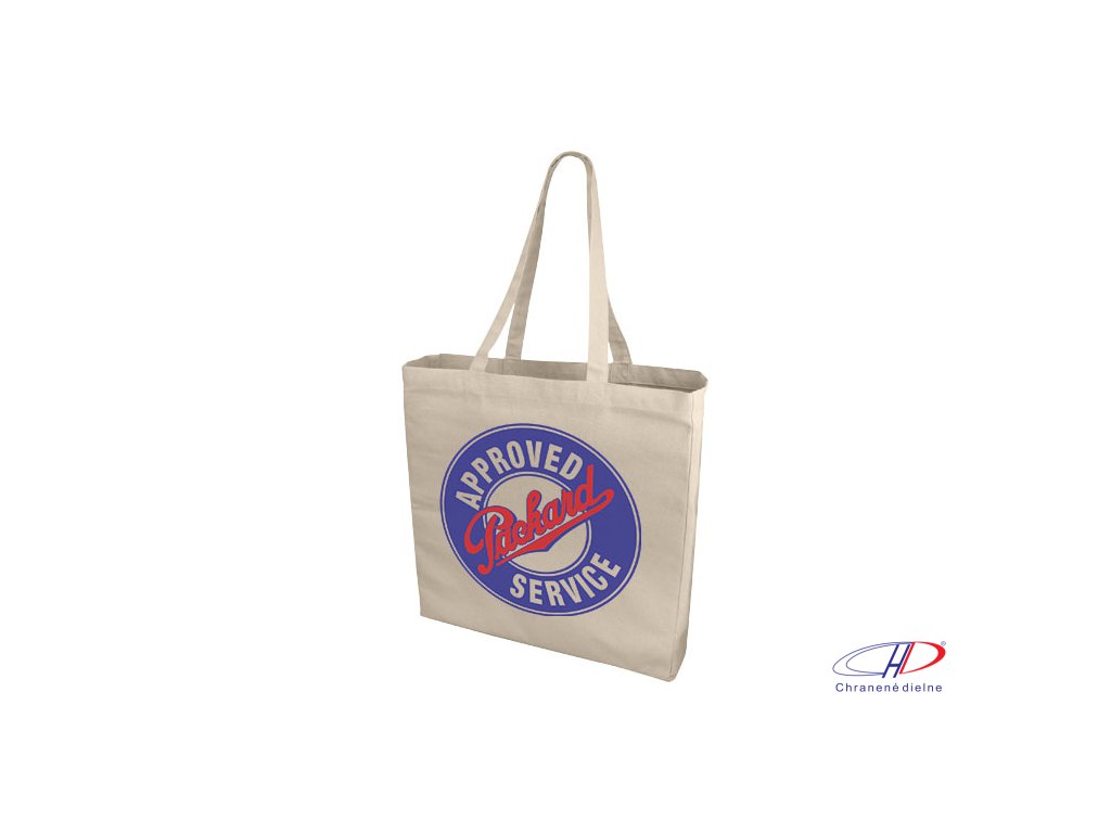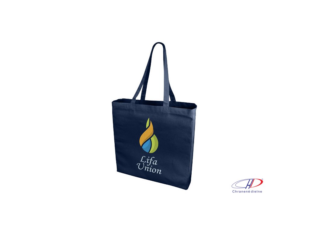 Taška s vložkou a otvoreným hlavným priestorom. Nosná výška popruhov 34 cm. Bavlna 220 g/m2. 38 x 41 x 8,5 cm.