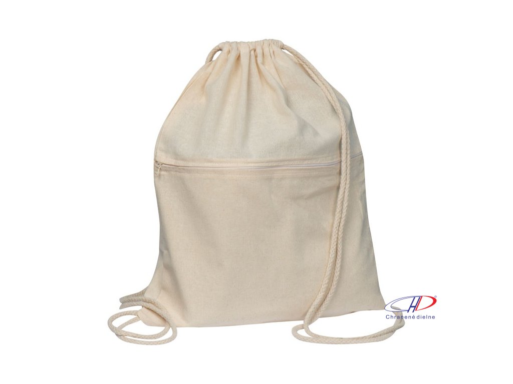 Taška s certifikátom Oeko-Tex® STANDARD 100 vyrobená z ekologickej bavlny prírodnej farby (140 g/m2) s uzatvárateľnou prednou priehradkou.Dodatočné parametre