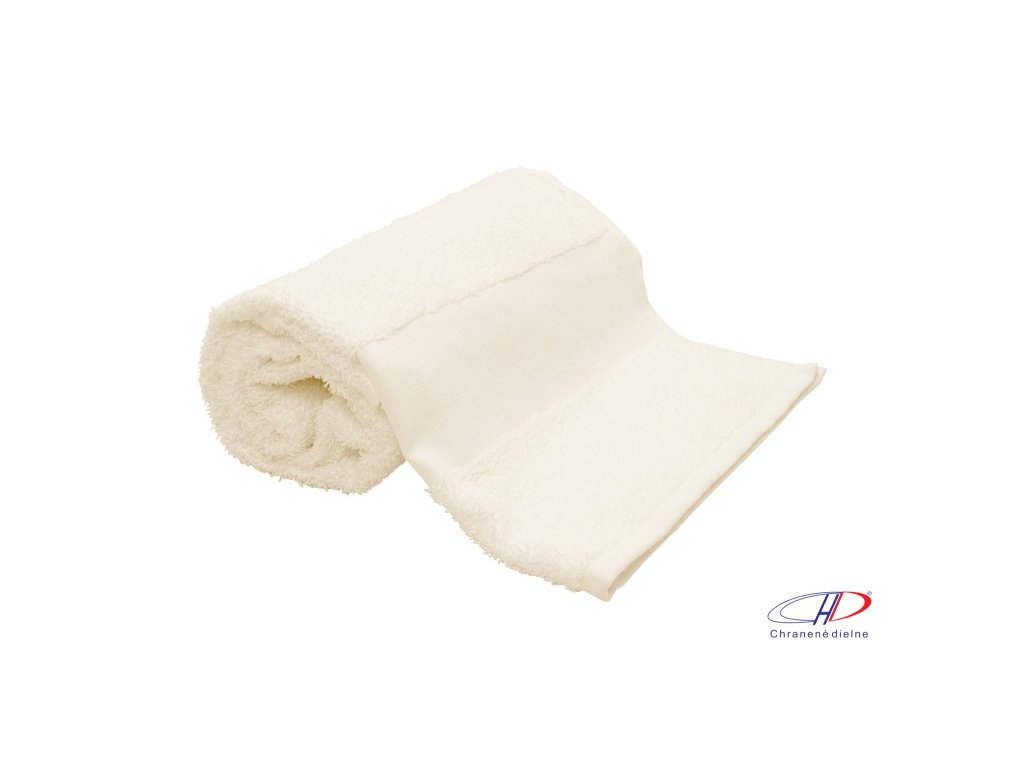 Bavlnený froté uterák s pútkom na zavesenie a potlačovateľnou bordúrou. 100% bavlna, 360 g/m2.