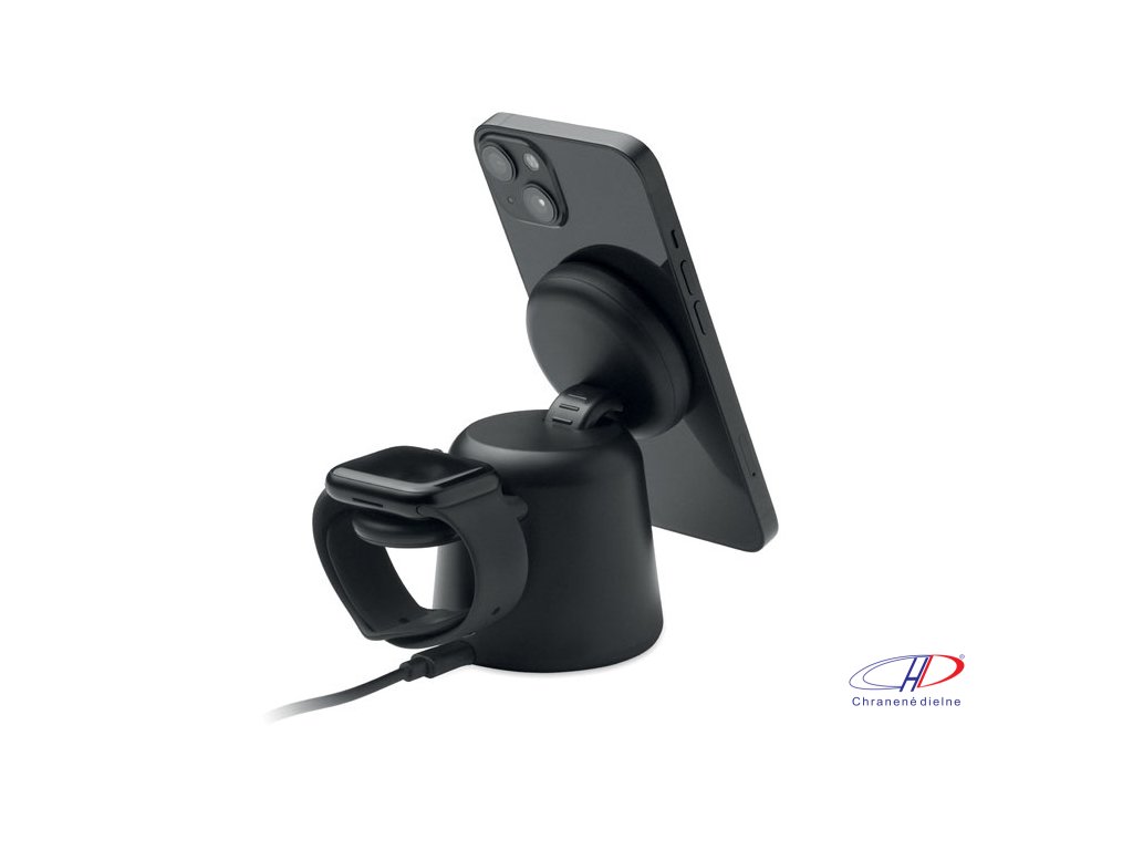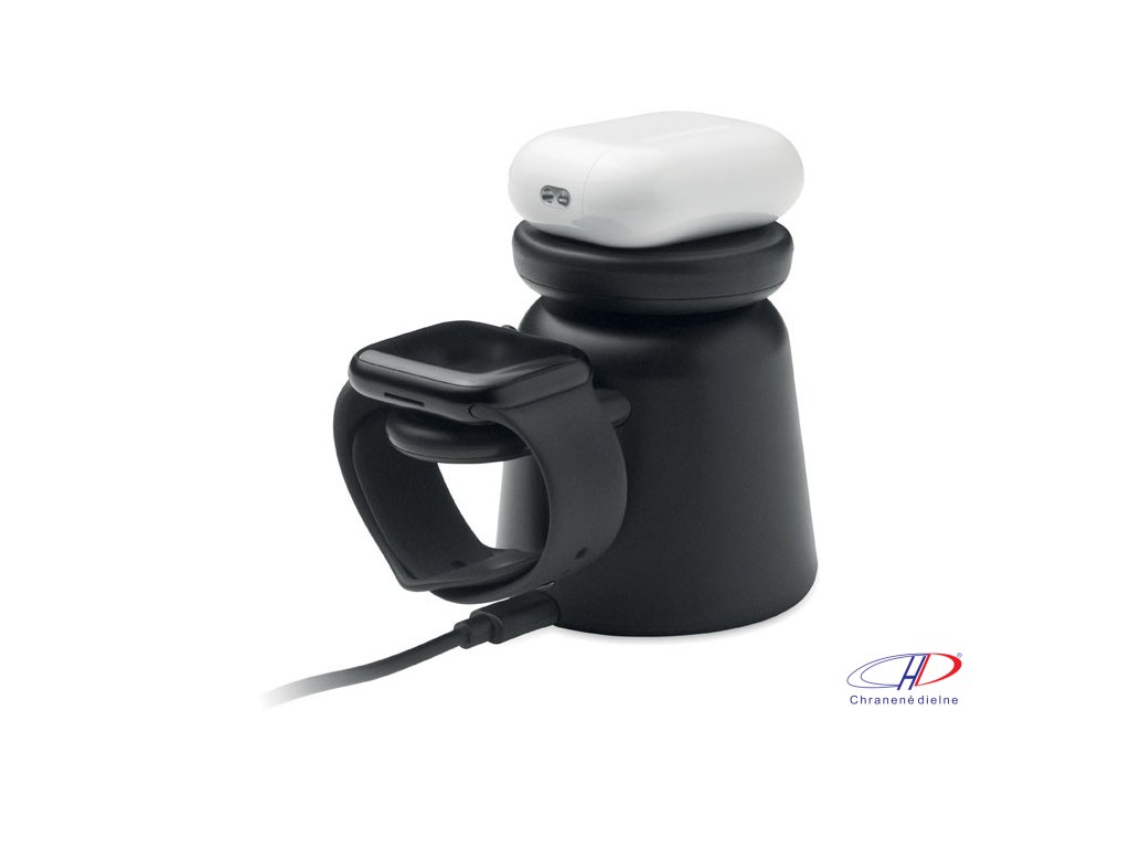 Bezdrôtová nabíjačka 15W, 3v1 , Black