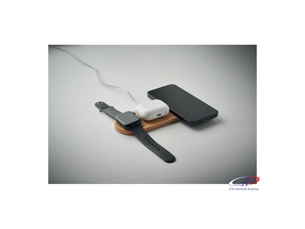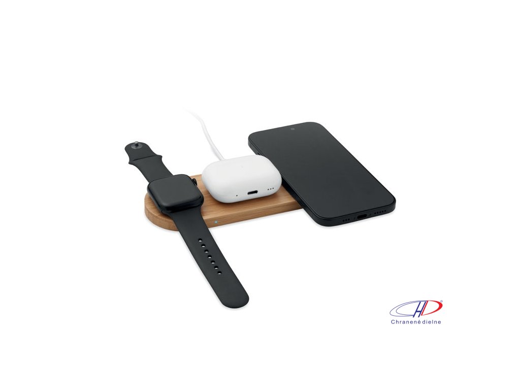 Bezdrôtová nabíjačka 15W, 3v1 , wood