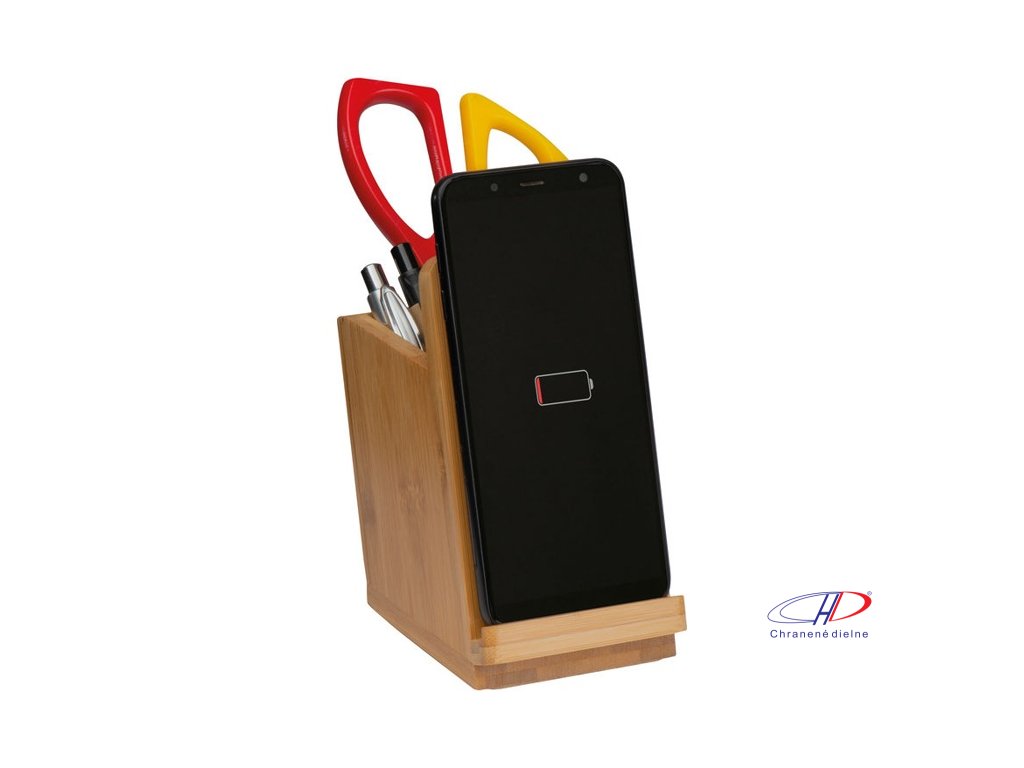 Bambusový držiak na pero s bezdrôtovou nabíjačkou pre zariadenia, ktoré podporujú túto funkciu. Vstup 5V, výstup 5V/1A. Nabíjací kábel je súčasťou balenia.Dodatočné parametre