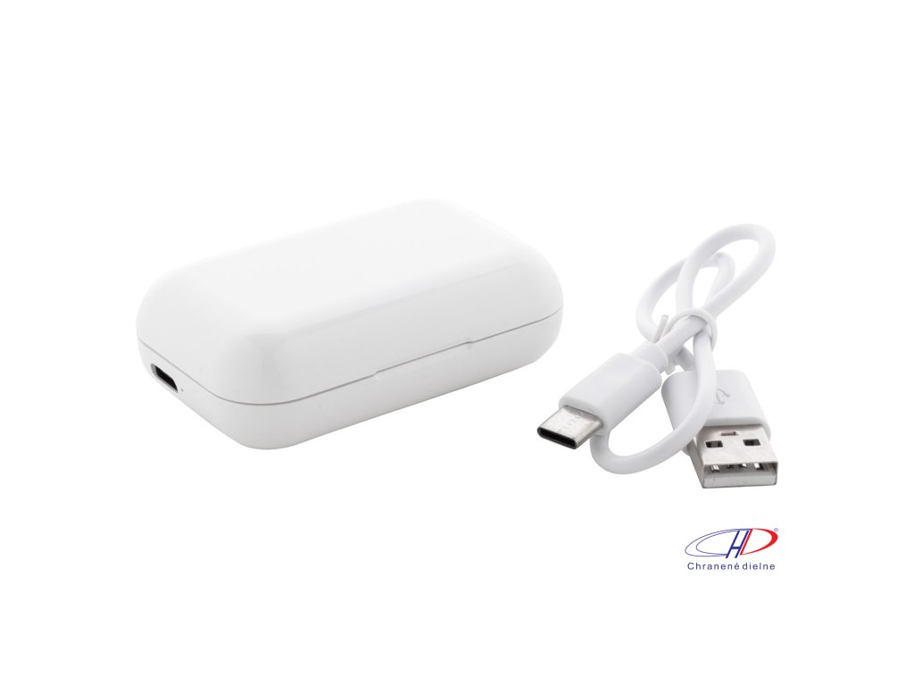 Recyklované ABS plastové bluetooth slúchadlá s funkciou hands-free volania, v plastovom nabíjacom púzdre s 400 mAh batériou. USB nabíjací kábel súčasťou.Dodatočné parametre