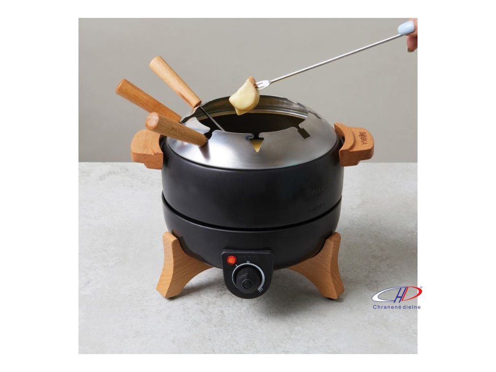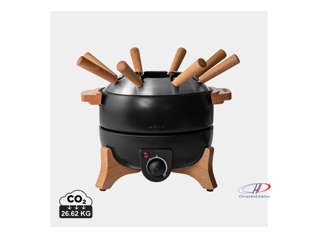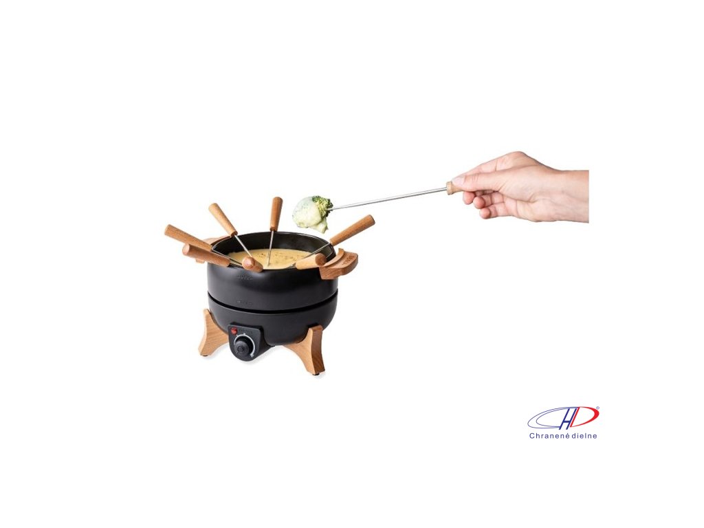 Objem 1,5 l na syrové alebo čokoládové fondue a 1,2 l na olejové fondue pre 8 osôb. Presné nastavenie teploty, keramický nepriľnavý povrch bez PFAS a PTFE, drevené rukoväte a 2m kábel (230V, Typ F). Ručné umývanie, 2-ročná záruka na elektr. komponenty.Dodatočné parametre