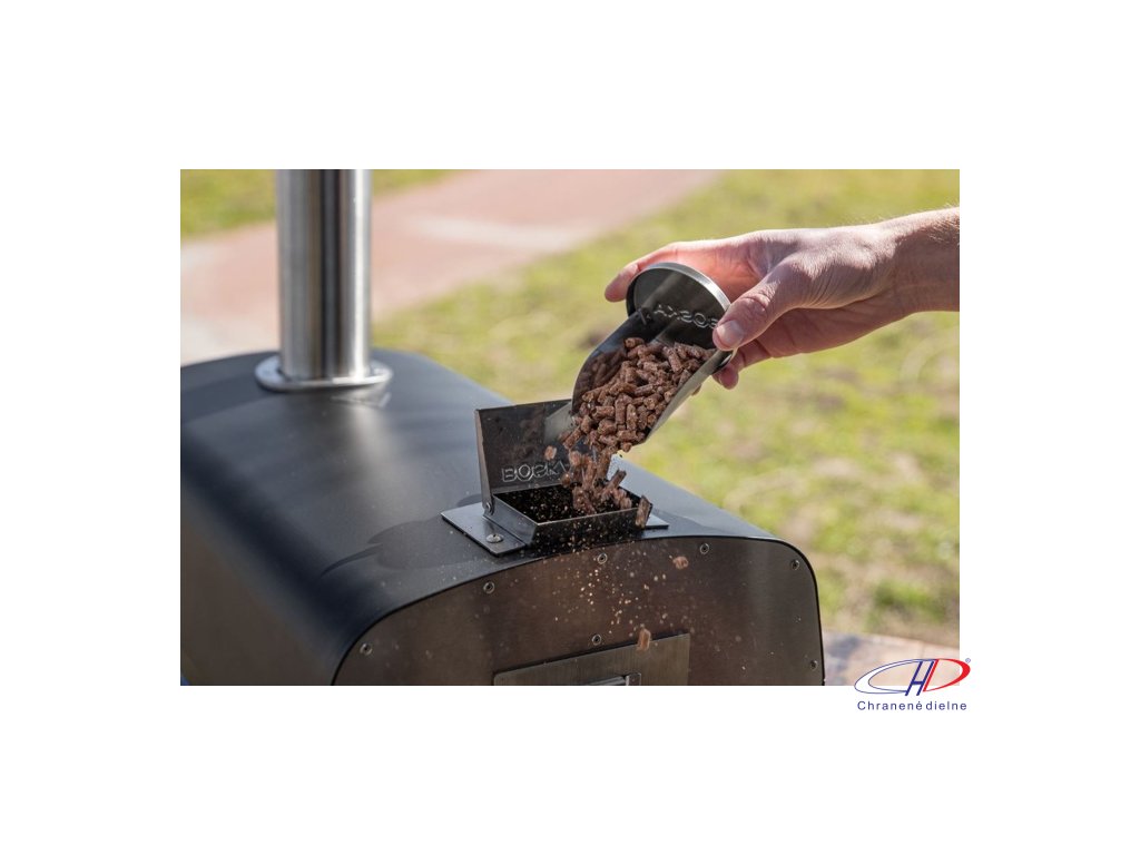 Teplota až 400°C, pizzový kameň a vzduchová komora sú navrhnuté tak, aby napodobňovali kachľovú pec. Určená pre pizze do 30 cm, viacúčelová rukoväť a jednoduchý systém dopĺňania peliet – jedna naberačka postačí na 2 pizze. Ručné umývanie. Doživotná záruka.Dodatočné parametre