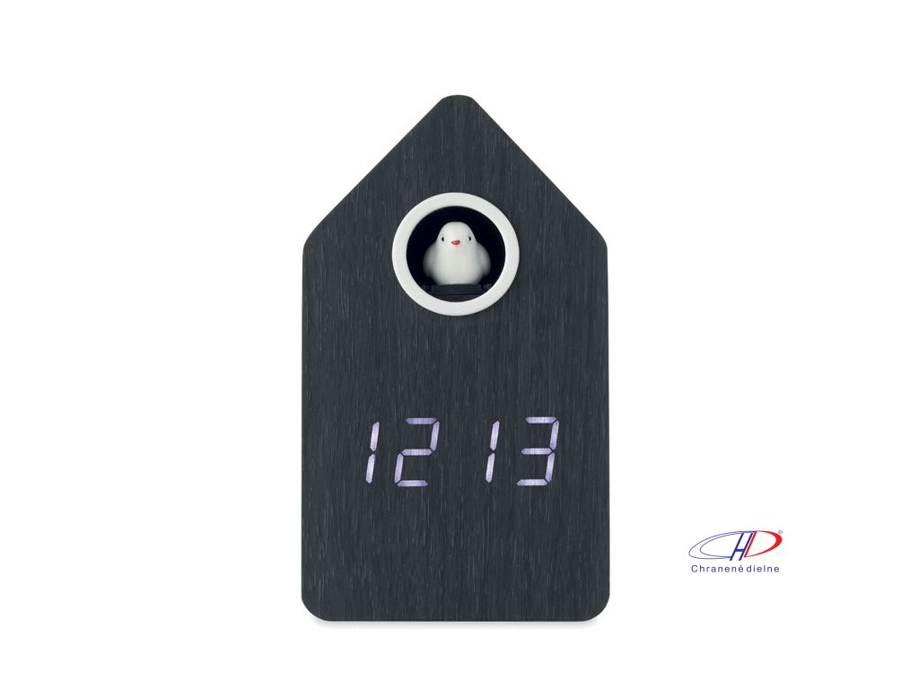 Budík s kukučkou z MDF , Black